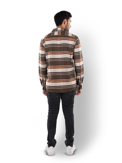 Celio* Striped Regular Fit Cotton Brown Shirt