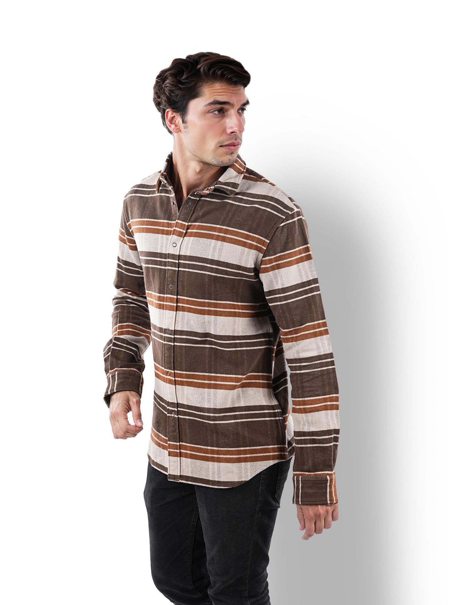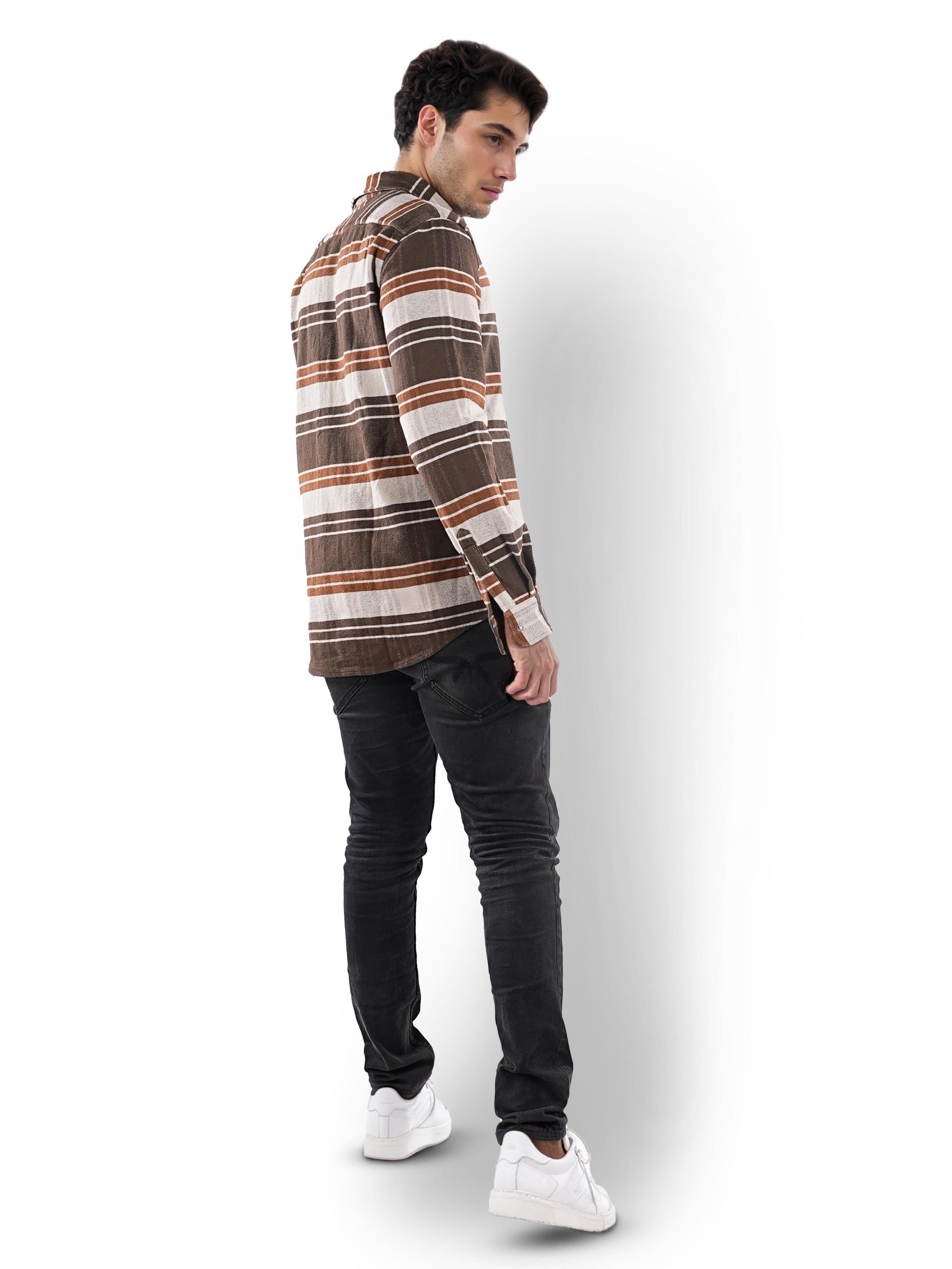 Elevate your casual wardrobe with this Celio men's brown cotton shirt. Featuring a spread collar and long sleeves, the yarn-dyed checks add a stylish touch to any outfit. Disclaimer: All other items in the image are only for display purposes and will not be a part of the delivery content. Product colour may slightly vary due to photographic lighting sources. Country of Origin - India.