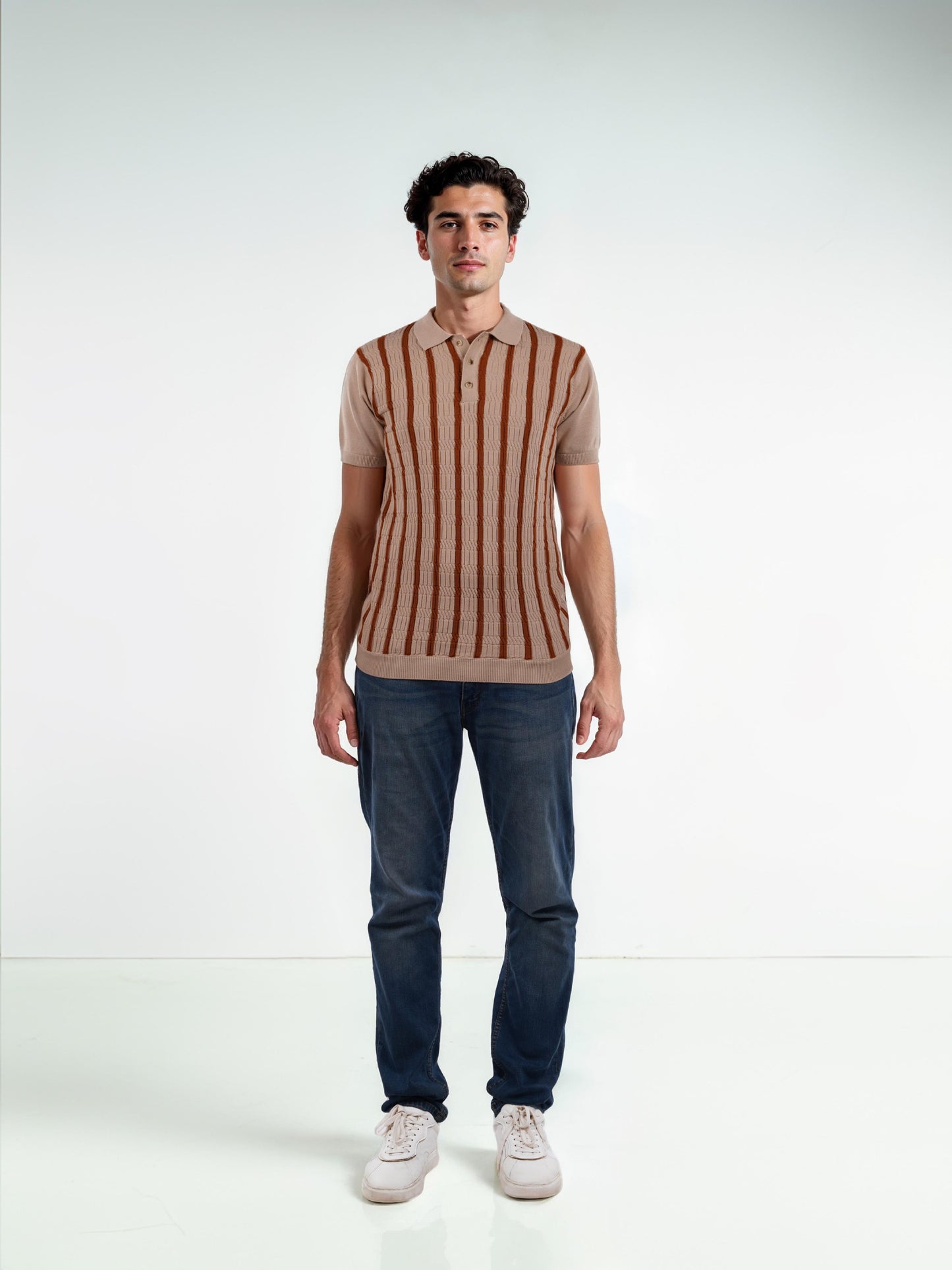 Elevate your casual wardrobe with this Men’s Brown Polo from Celio. Crafted from comfortable cotton, it features a classic striped design and regular fit, perfect for any casual occasion. Disclaimer: All other items in the image are only for display purposes and will not be a part of the delivery content. Product colour may slightly vary due to photographic lighting sources. Country of Origin - India.