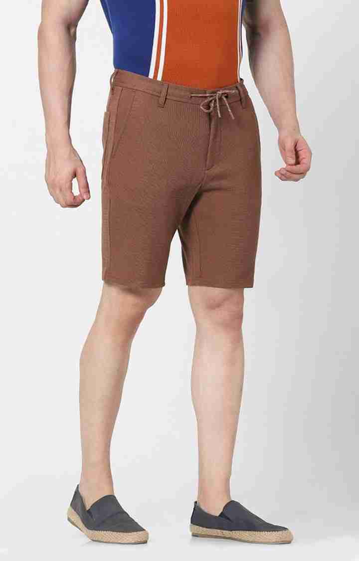 Elevate your casual look with Celio Men's Regular Fit Brown Knitted Shorts. Made from soft polycotton, these stylish shorts are perfect for everyday wear. Disclaimer: All other items in the image are only for display purposes and will not be a part of the delivery content. Product colour may slightly vary due to photographic lighting sources. Country of Origin - India.