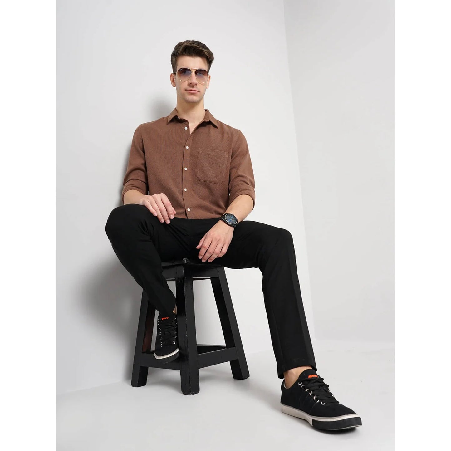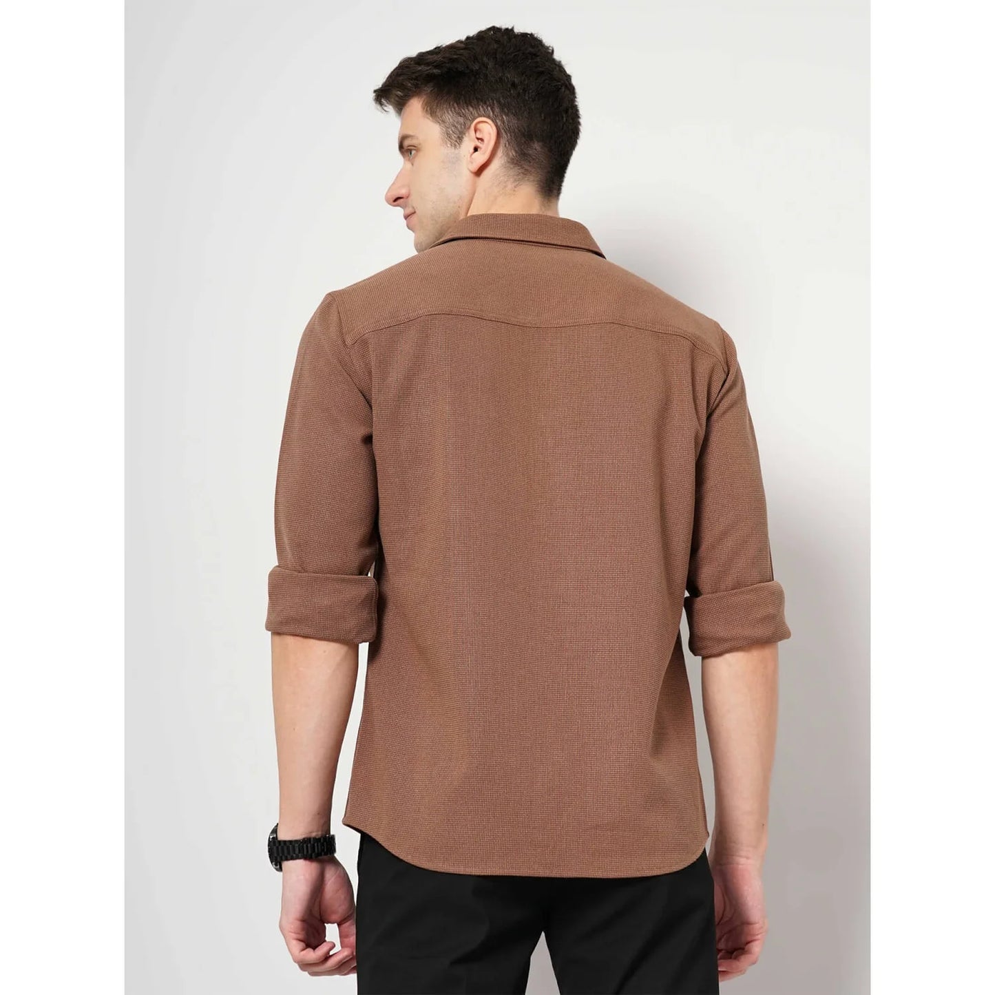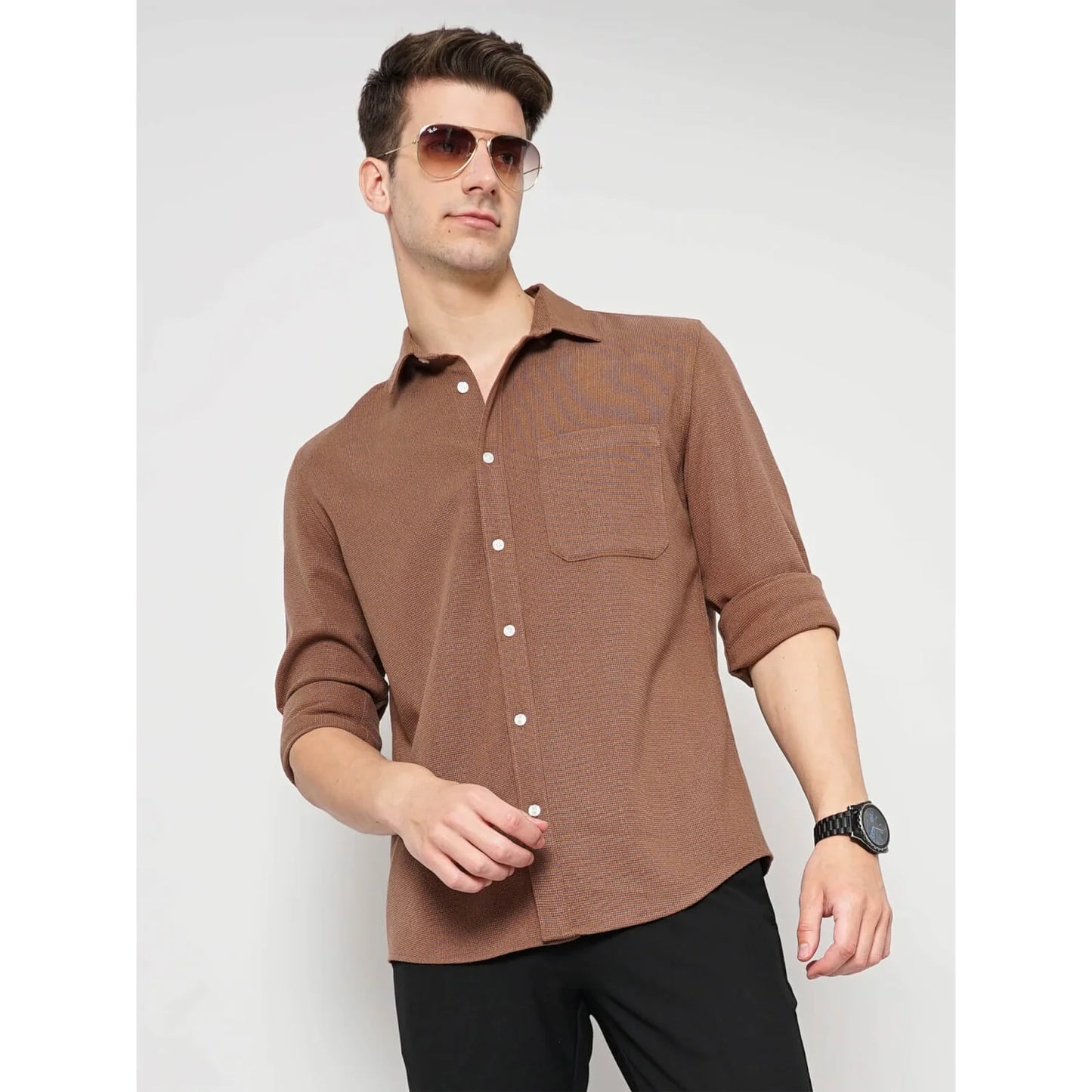 Celio* Solid Regular Fit Polyester Brown Shirt