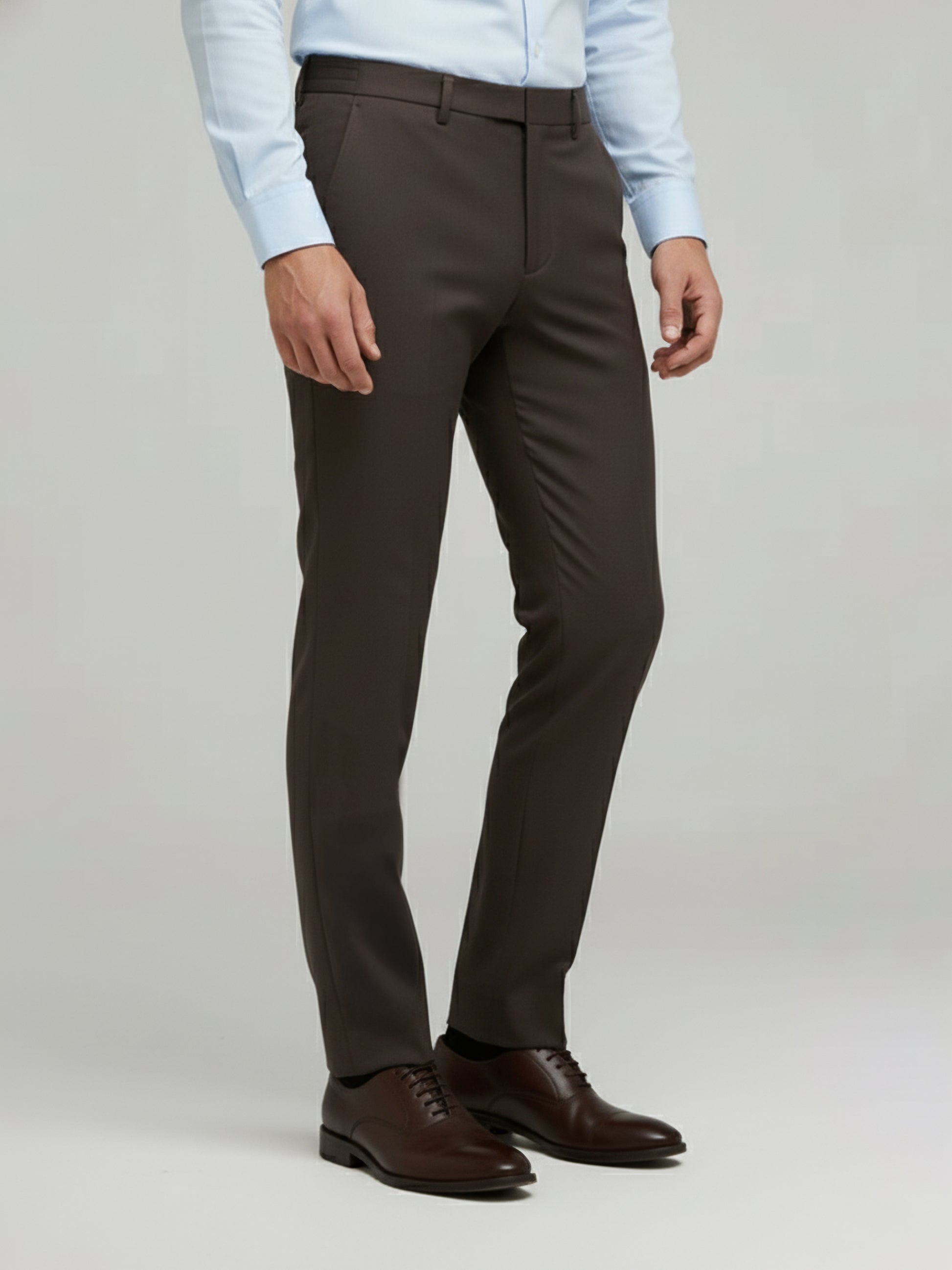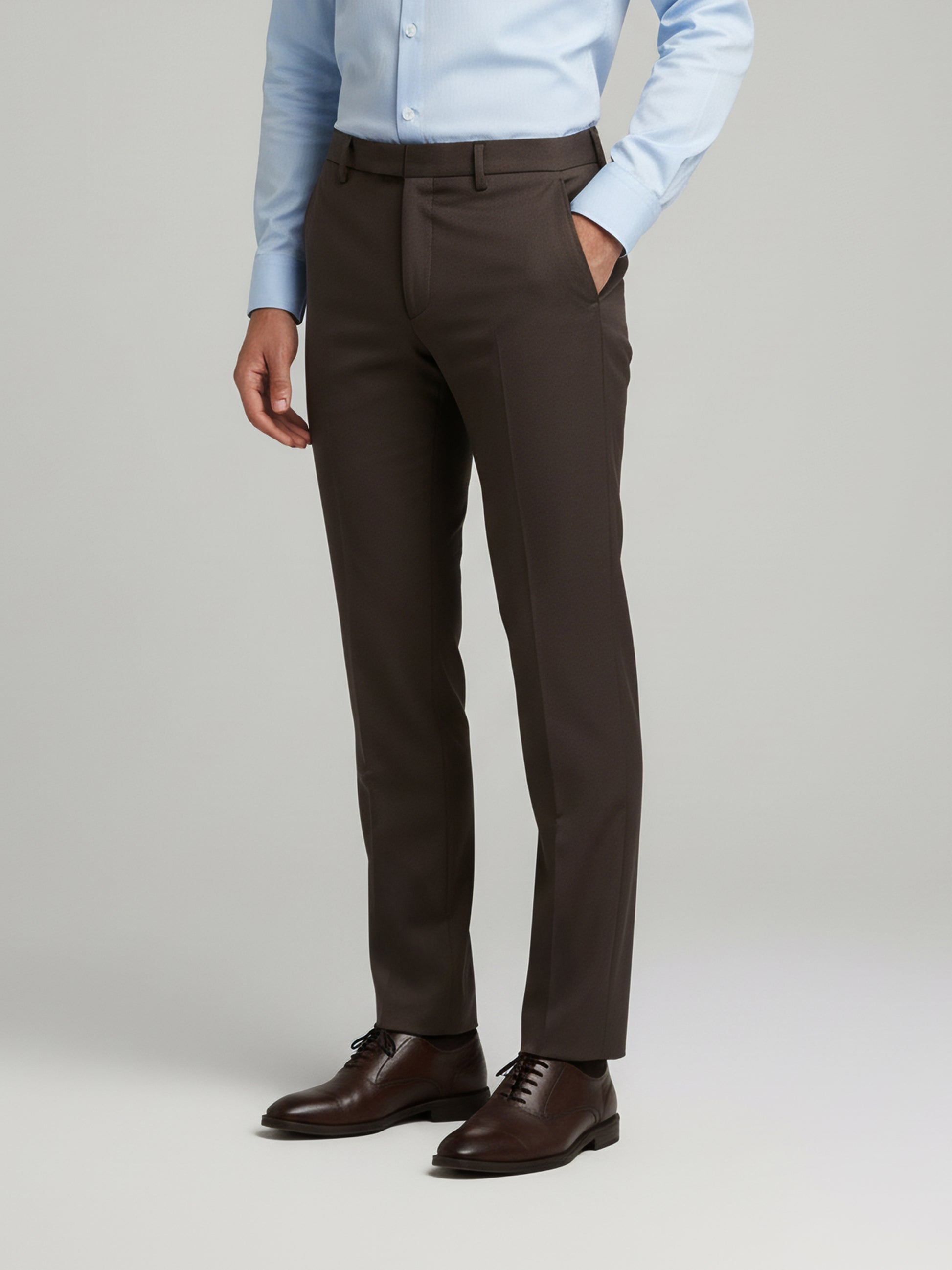 Celio* Men Brown Solid Straight Fit Polyester Trousers