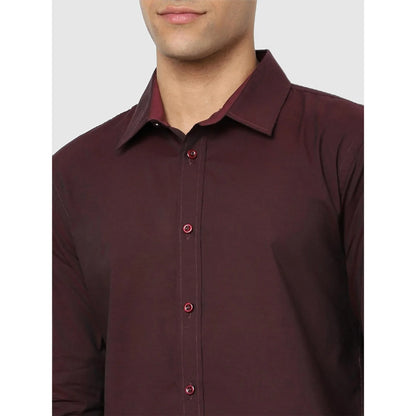 Celio* Solid Regular Fit Cotton Burgundy Shirt