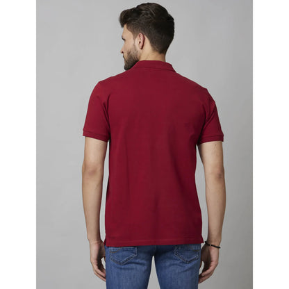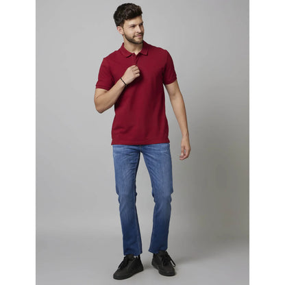 Celio* Solid Regular Fit Cotton Burgundy T-Shirt