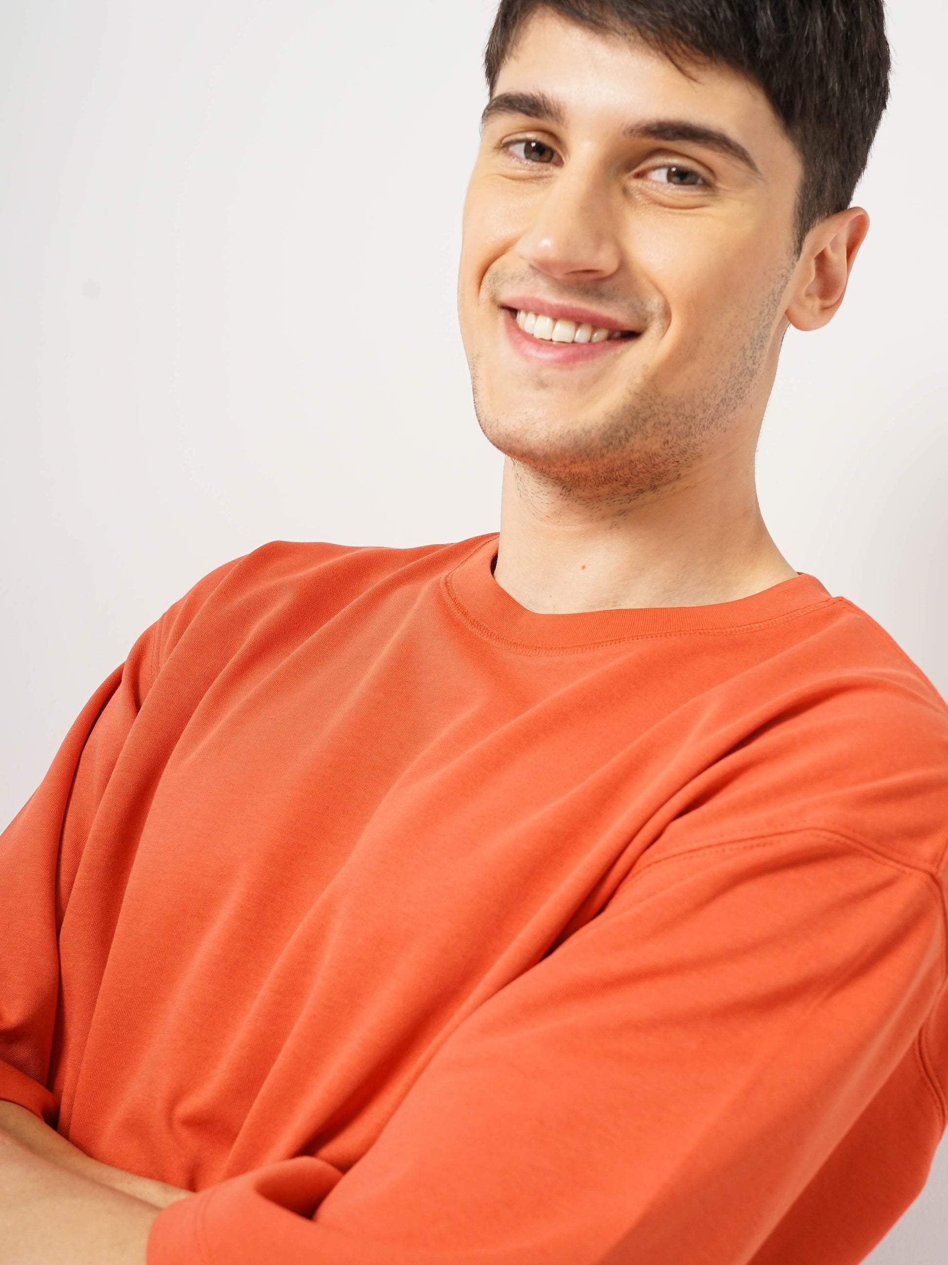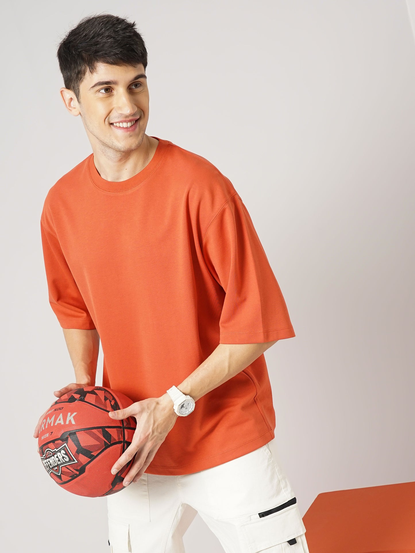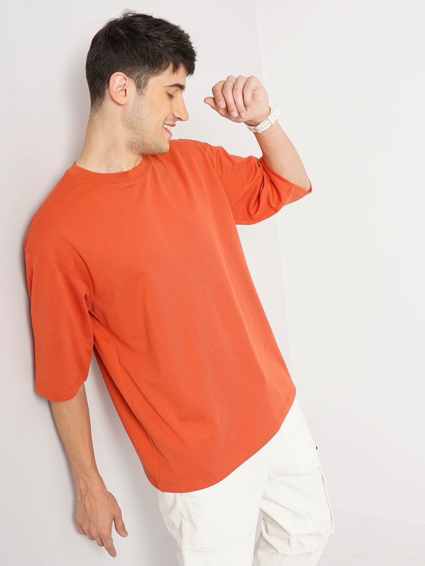 Elevate your casual wardrobe with the Celio Men Solid Oversized Cotton T-Shirt in vibrant coral. Designed for comfort and style, it features short sleeves and a relaxed fit. Disclaimer: All other items in the image are only for display purposes and will not be a part of the delivery content. Product colour may slightly vary due to photographic lighting sources. Country of Origin - India.