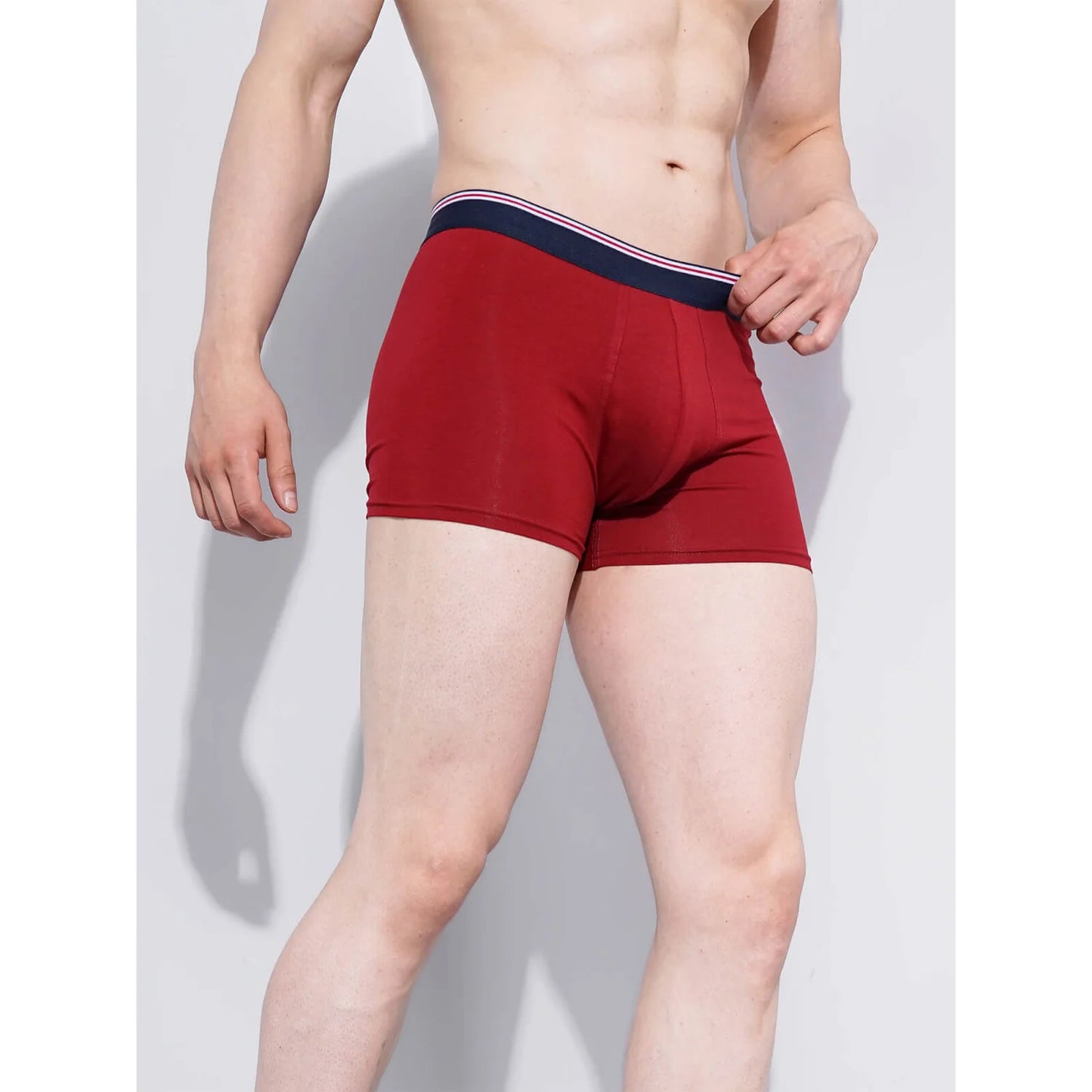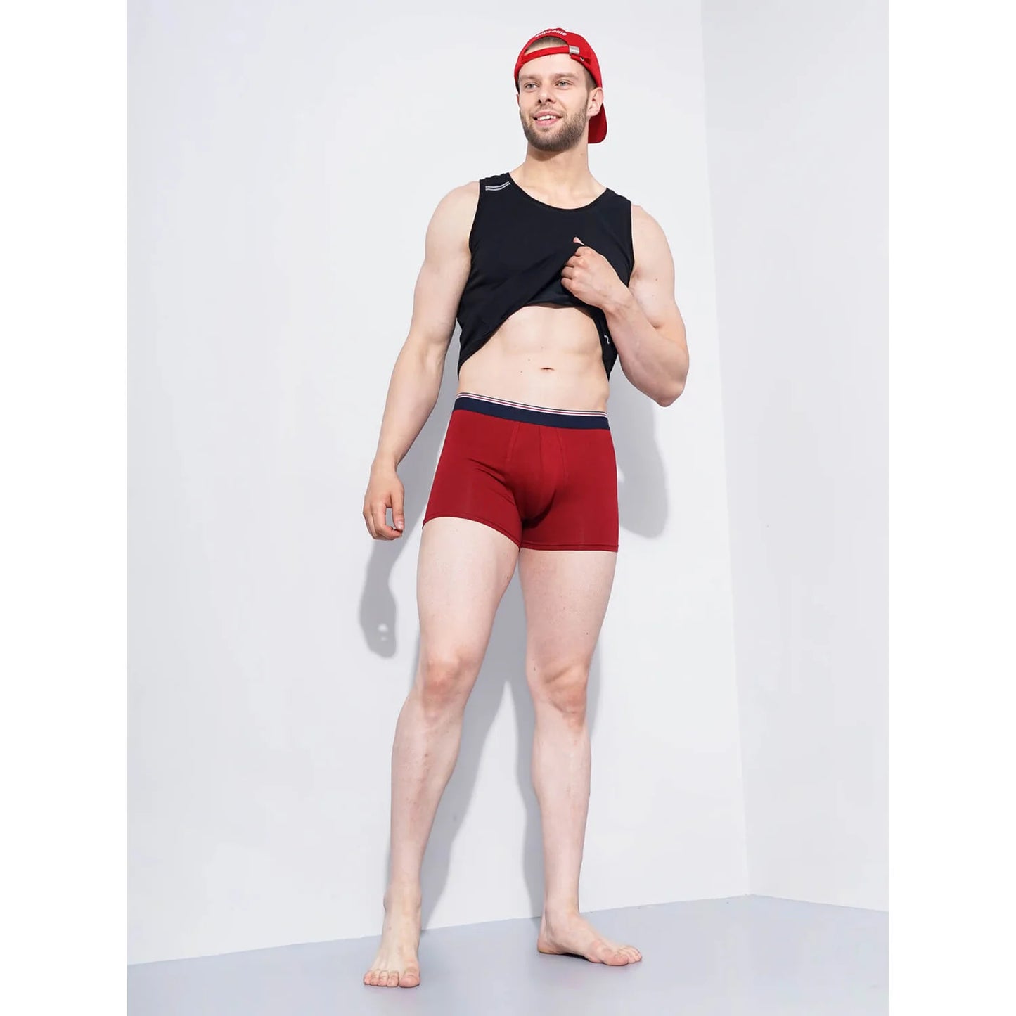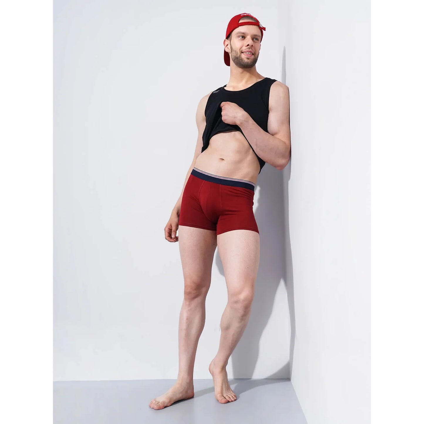 Discover comfort with Celio's Stretch Cotton Blend Solid Burgundy Knitted Boxer. Perfect for casual occasions, designed for men in a stylish red hue. Disclaimer: All other items in the image are only for display purposes and will not be a part of the delivery content. Product colour may slightly vary due to photographic lighting sources. Country of Origin - India.