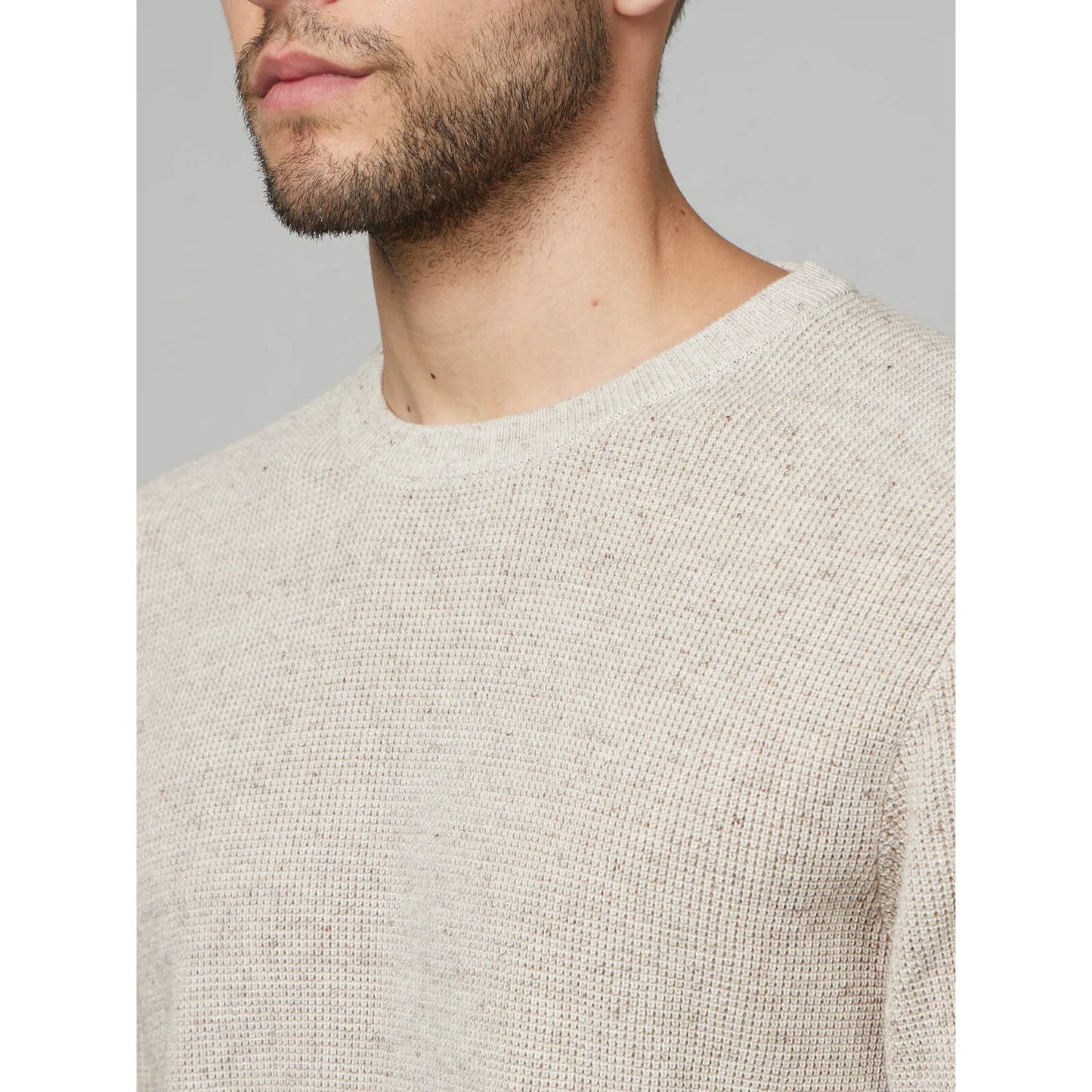 Celio* Textured Regular Fit Cotton-Poly-Blend Cream Sweater