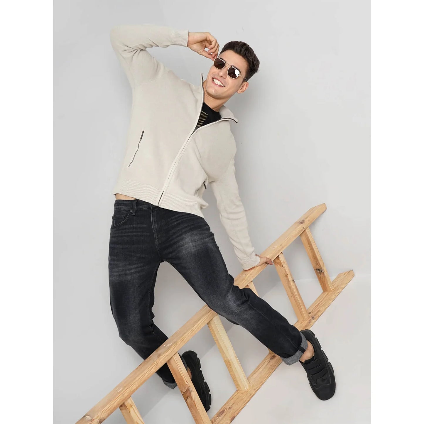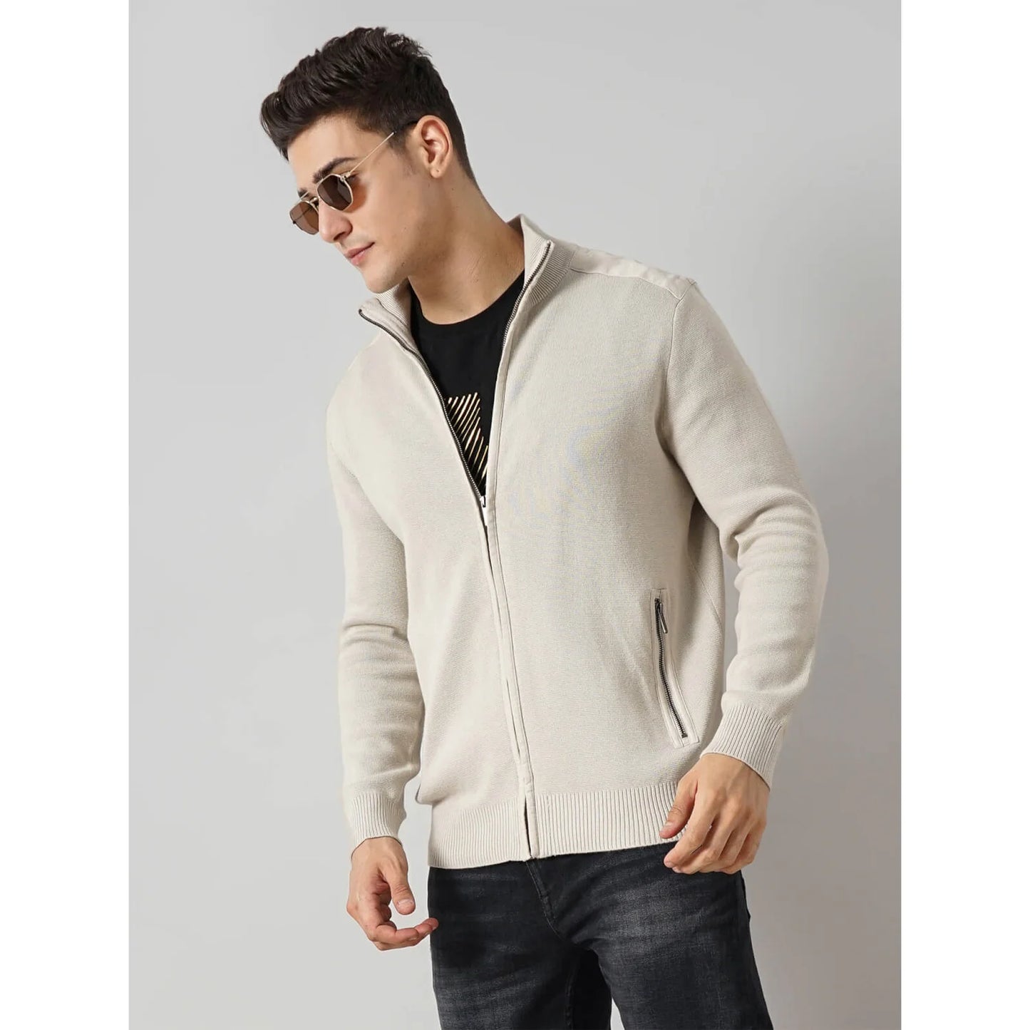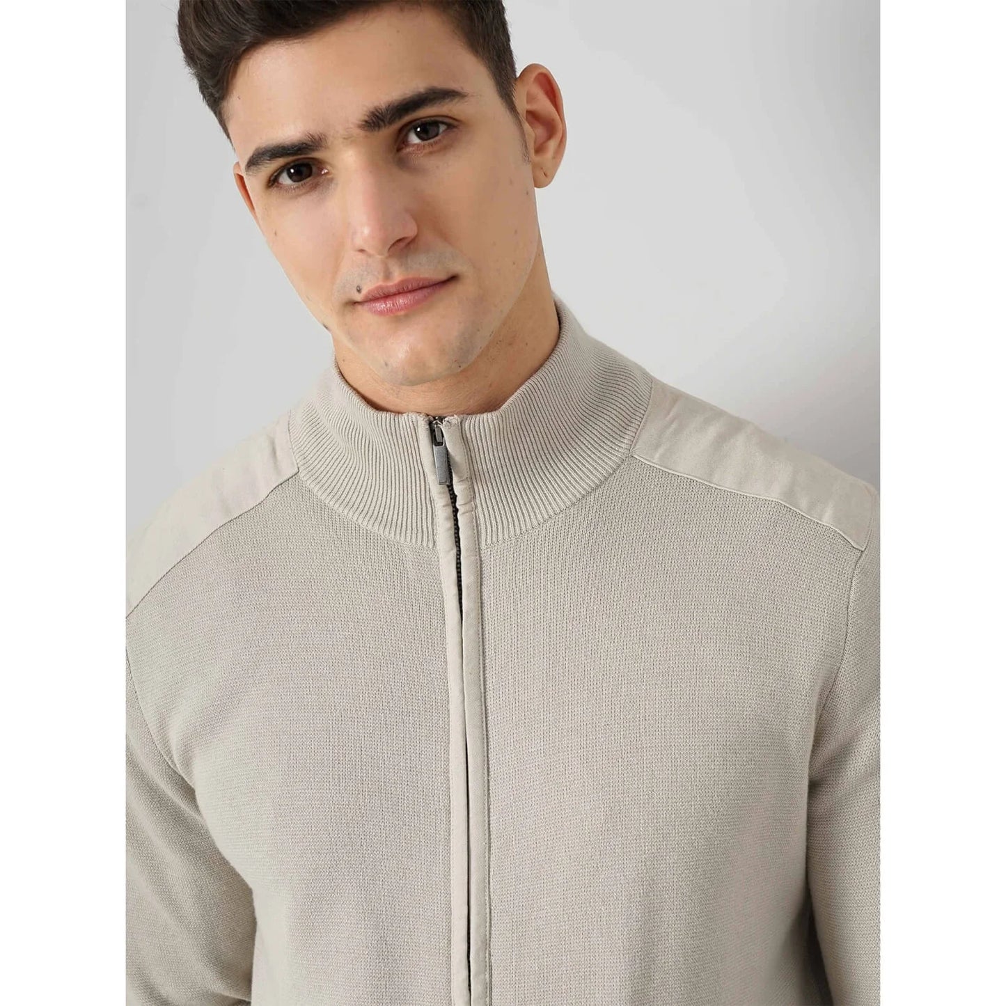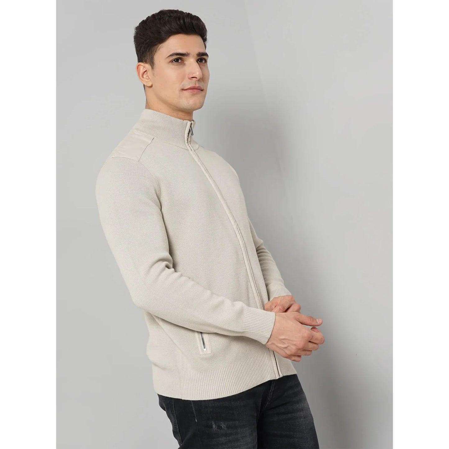 Celio* Solid Regular Fit Cotton Cream Sweater