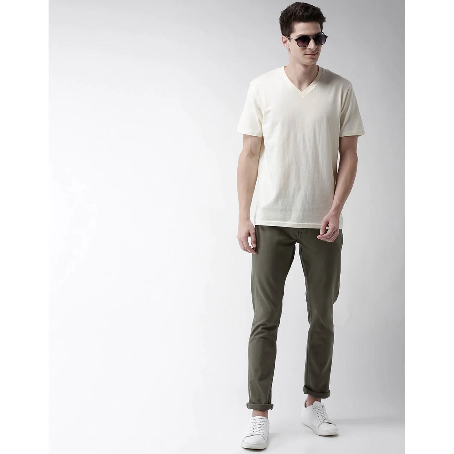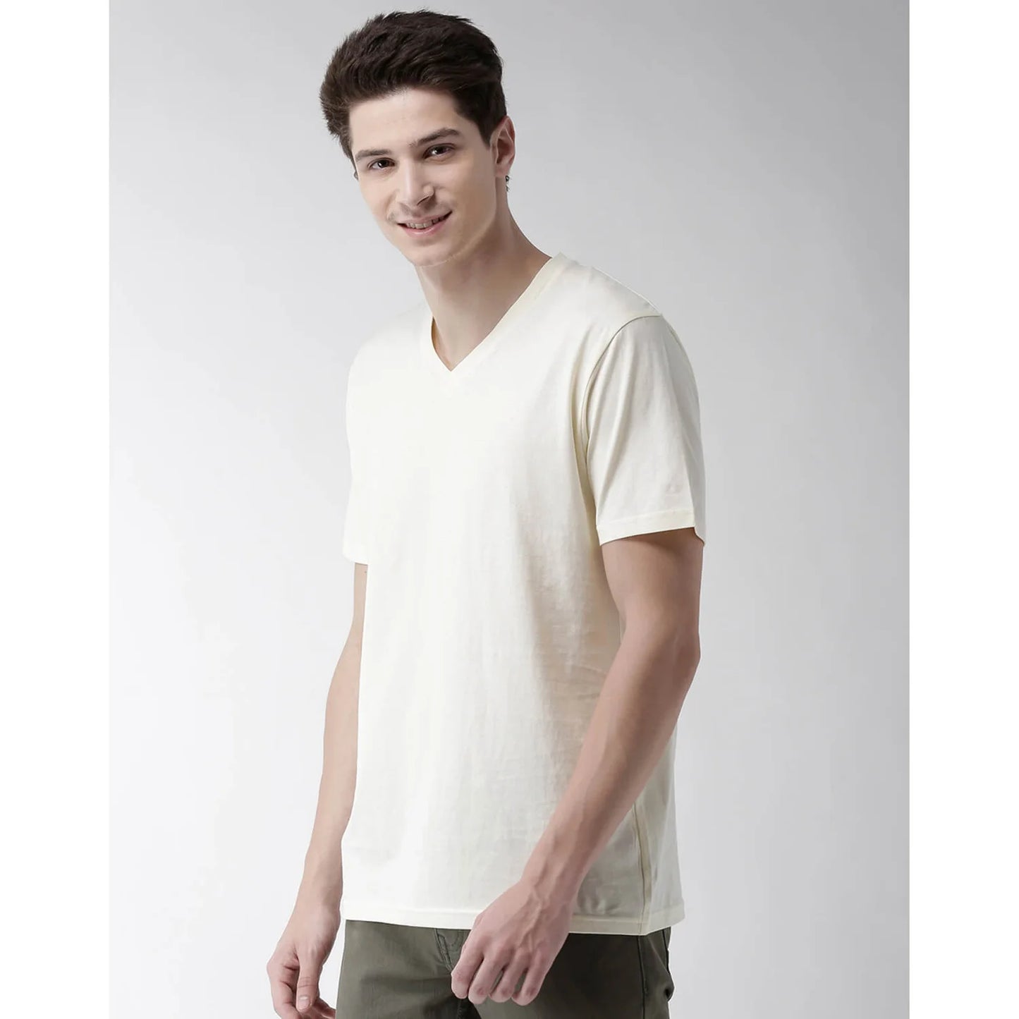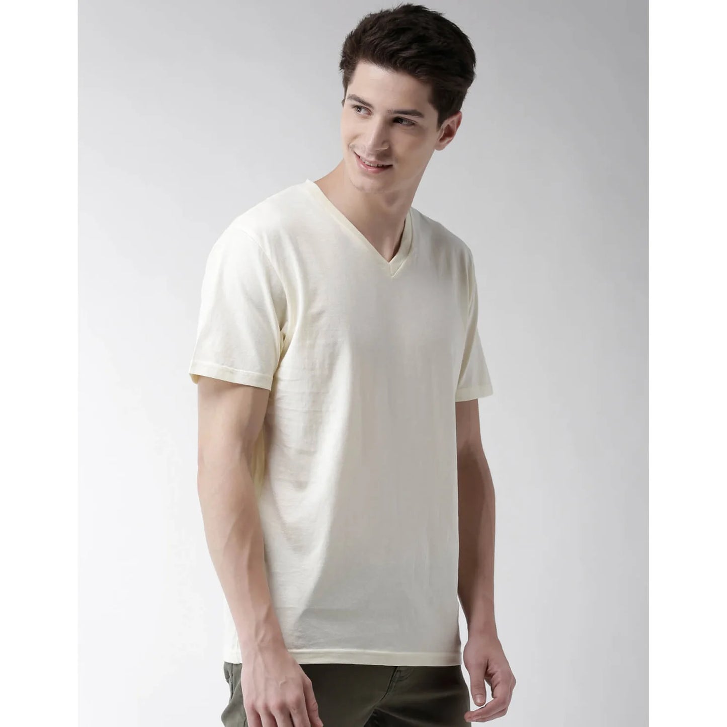 Celio* Solid Regular Fit Cotton Cream T-Shirt