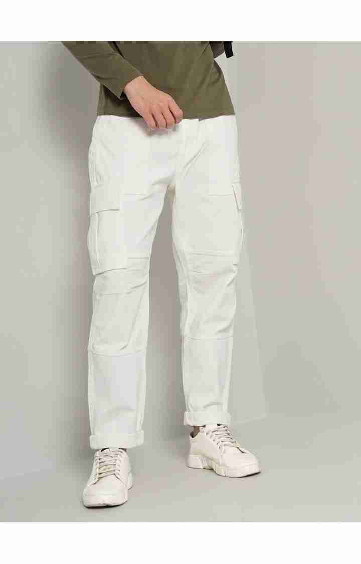 Celio* Cotton Relaxed Fit White Trouser