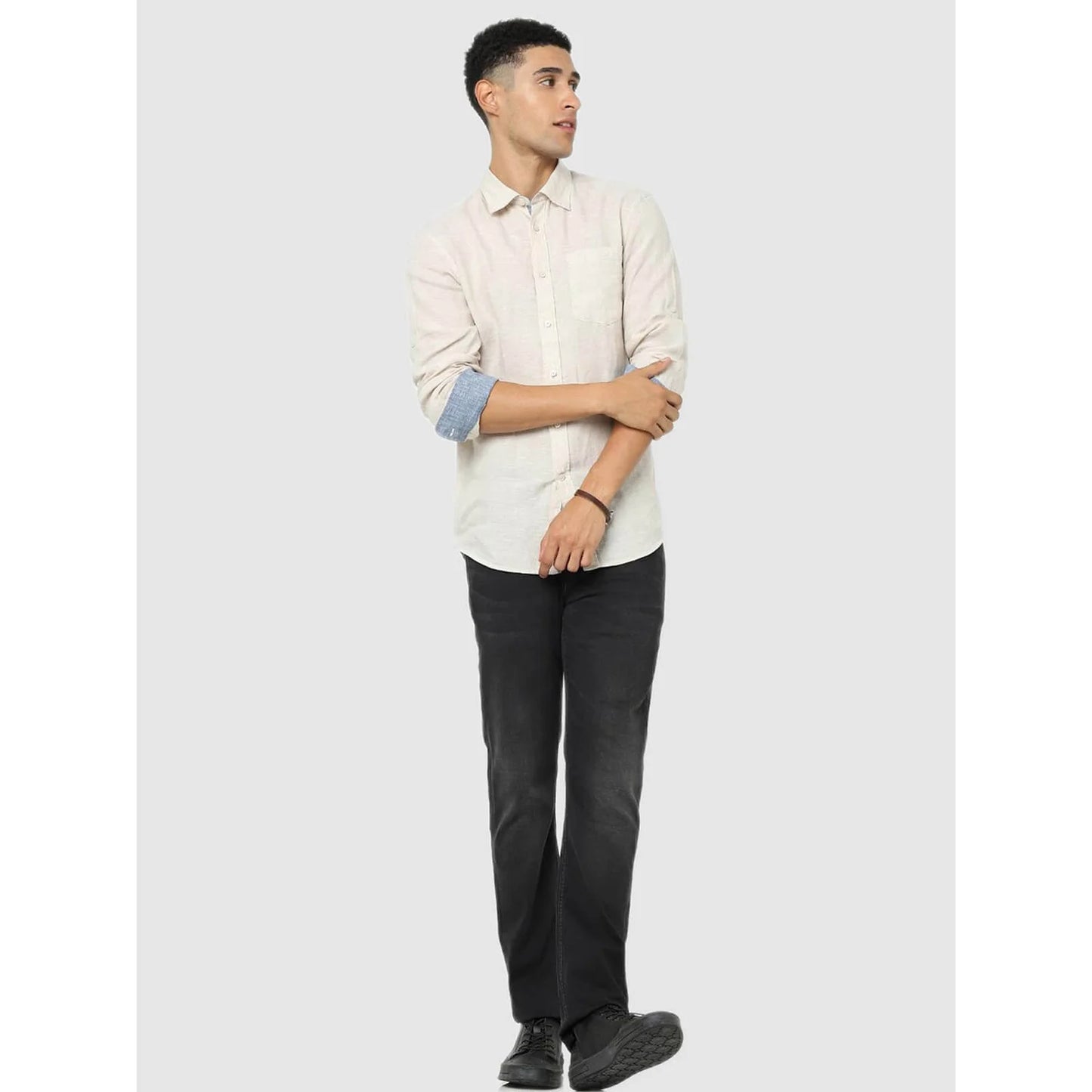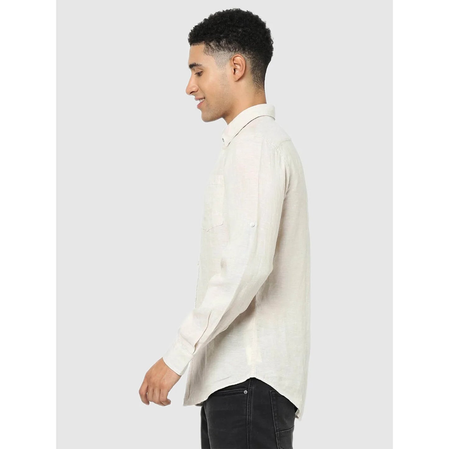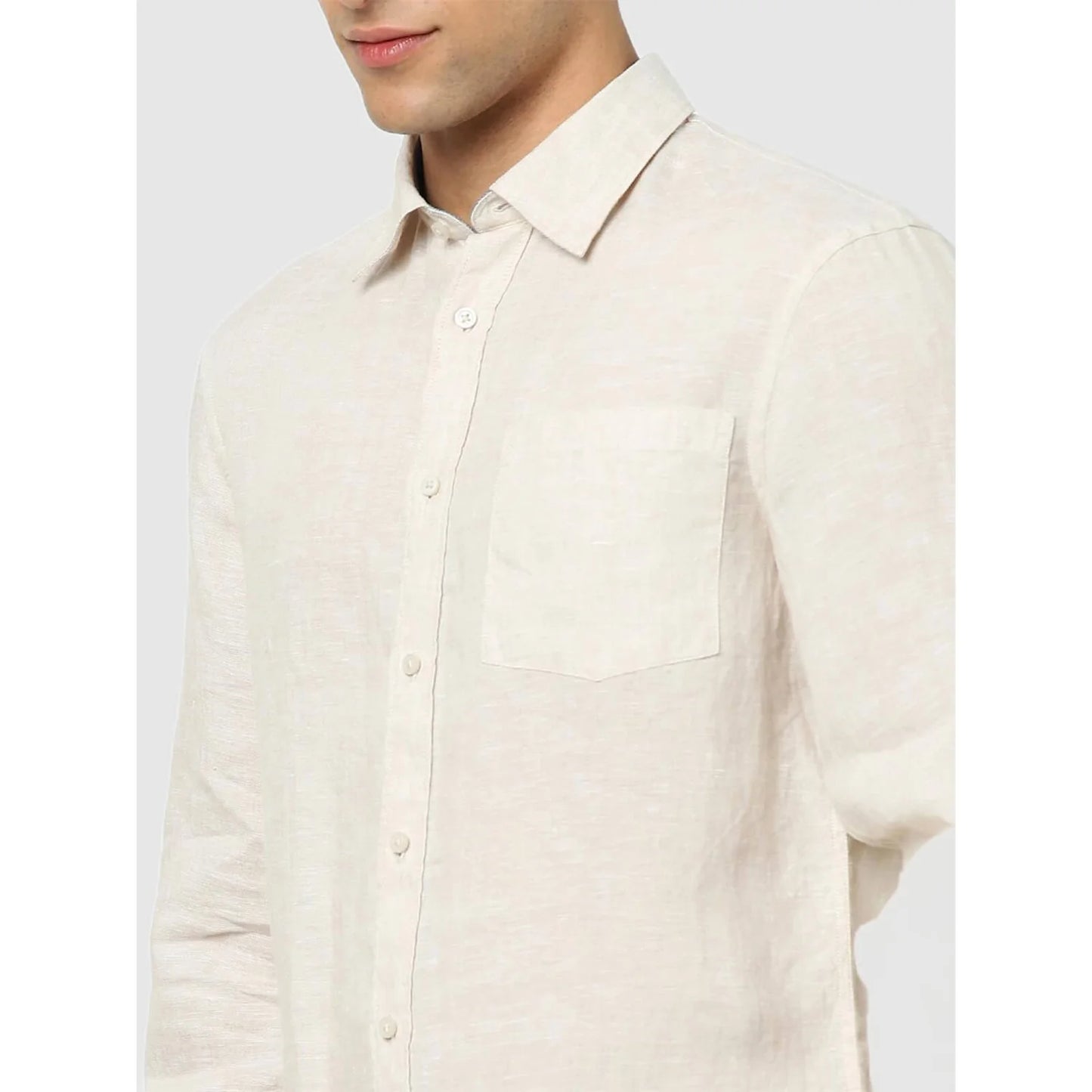 Elevate your casual wardrobe with the Celio Cream Solid Regular Fit Shirt, crafted from breathable linen with long sleeves for a relaxed yet stylish look. Disclaimer: All other items in the image are only for display purposes and will not be a part of the delivery content. Product colour may slightly vary due to photographic lighting sources. Country of Origin - India.