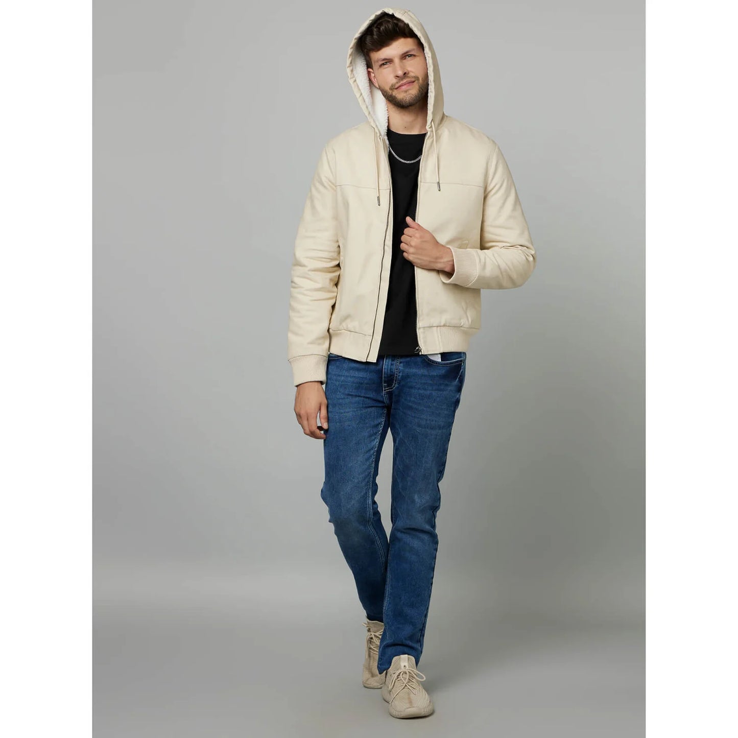 Celio* Solid Regular Fit Poly-Blend Cream Jacket