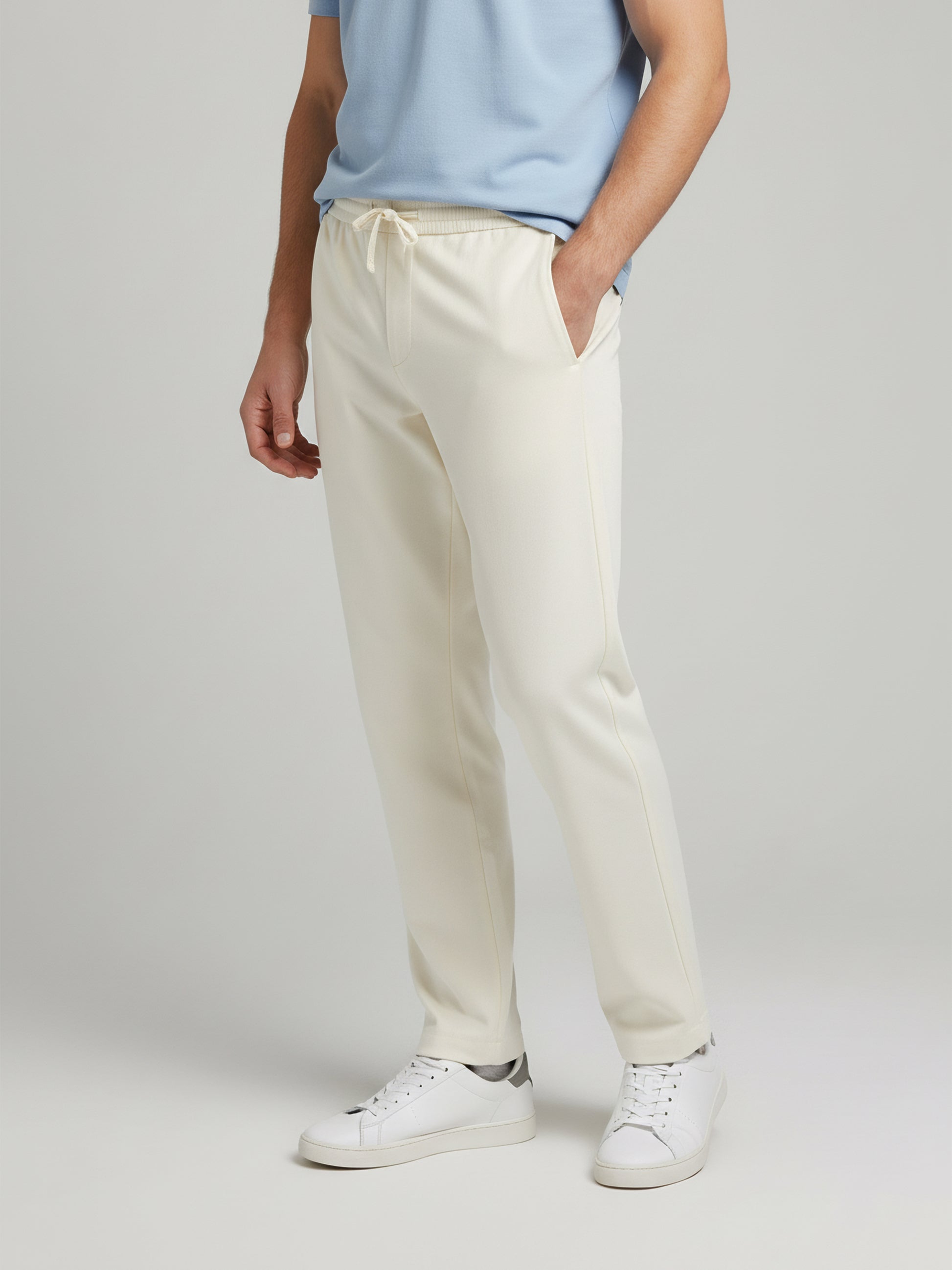 Explore comfort in Celio's cream solid straight-fit trousers crafted from poly-blend fabric. Perfect for casual occasions, these men's pants offer style and durability. Disclaimer: All other items in the image are only for display purposes and will not be a part of the delivery content. Product colour may slightly vary due to photographic lighting sources. Country of Origin - India.