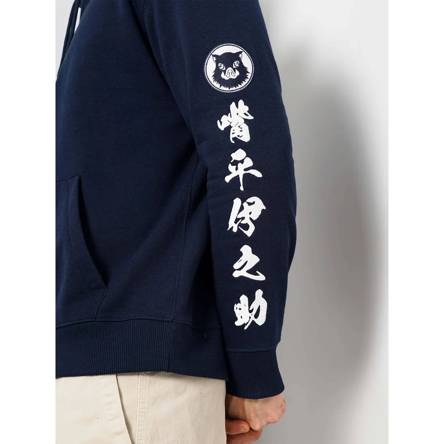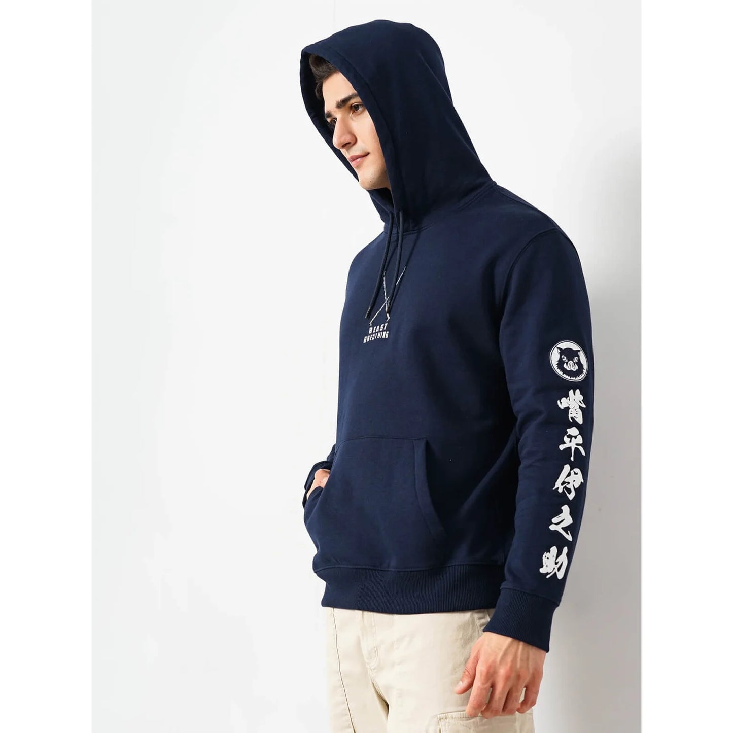 Show your loyalty to Inosuke with the Demon Slayer Navy Blue Graphic Printed Cotton Hooded Sweatshirt. Featuring Inosuke’s iconic dual swords on the front and his boar’s head symbol on the sleeve, this navy hoodie pays homage to his fearless personality. Crafted from soft cotton, it’s perfect for cool days and casual wear. With its unique design elements, this sweatshirt lets you bring a bit of Demon Slayer into your everyday wardrobe. Pair it with joggers or jeans for a bold, edgy look that’s ready for any adventure. Disclaimer: All other items in the image are only for display purposes and will not be a part of the delivery content. Product color may vary slightly due to photographic lighting sources. Country of Origin - India.