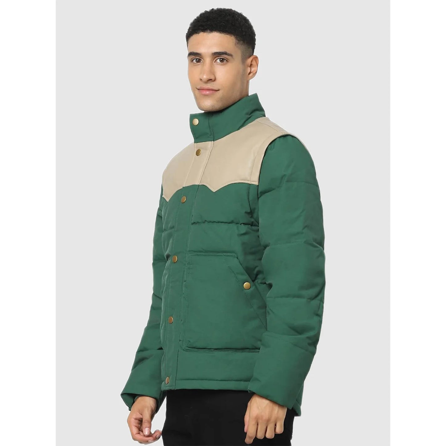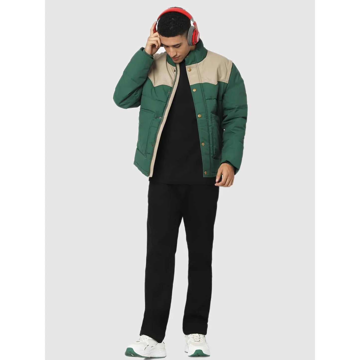 Elevate your casual style with the Celio Green Color Regular Fit Block Jacket. Crafted from a comfortable cotton blend, this men's jacket features long sleeves for a modern look. Disclaimer: All other items in the image are only for display purposes and will not be a part of the delivery content. Product colour may slightly vary due to photographic lighting sources. Country of Origin - India.