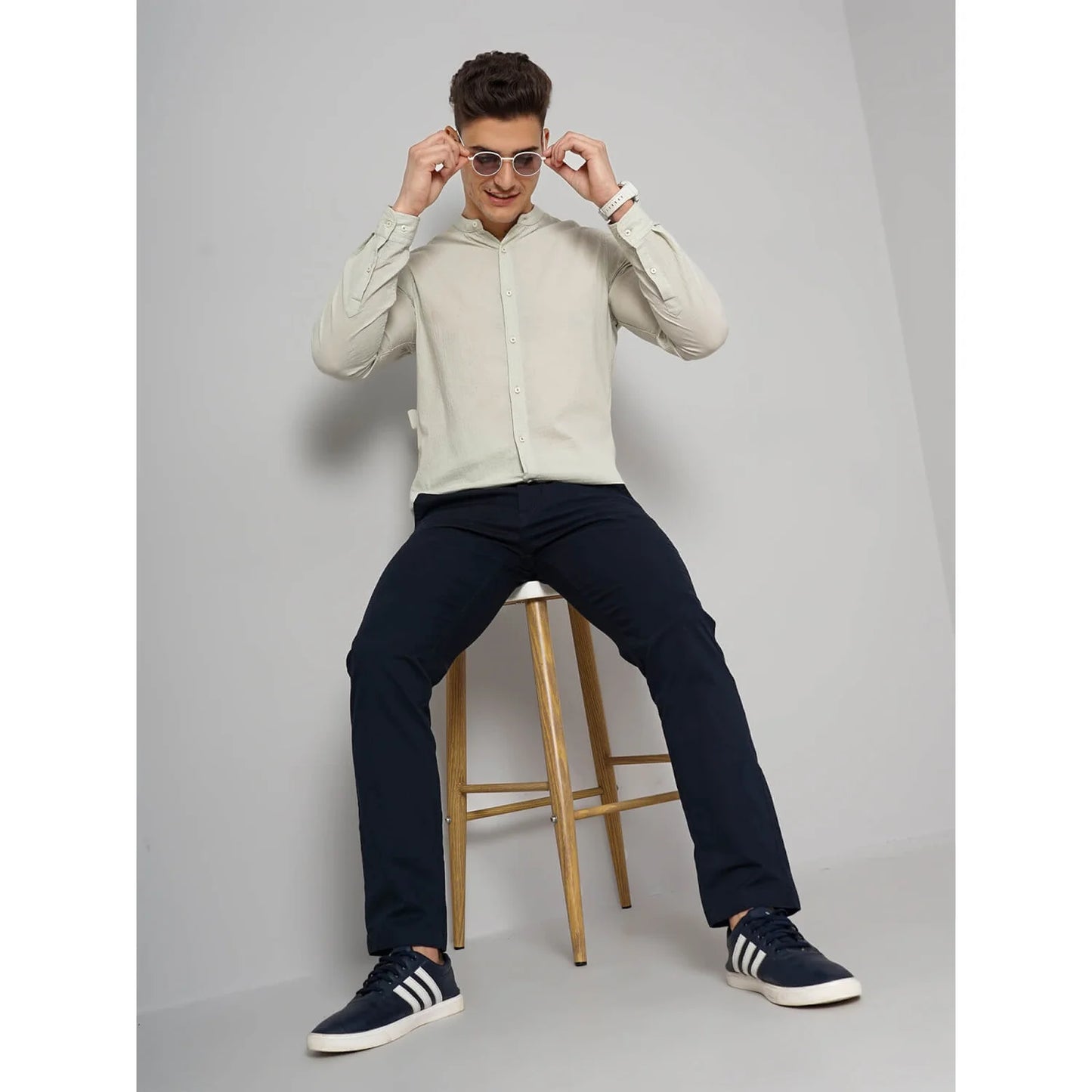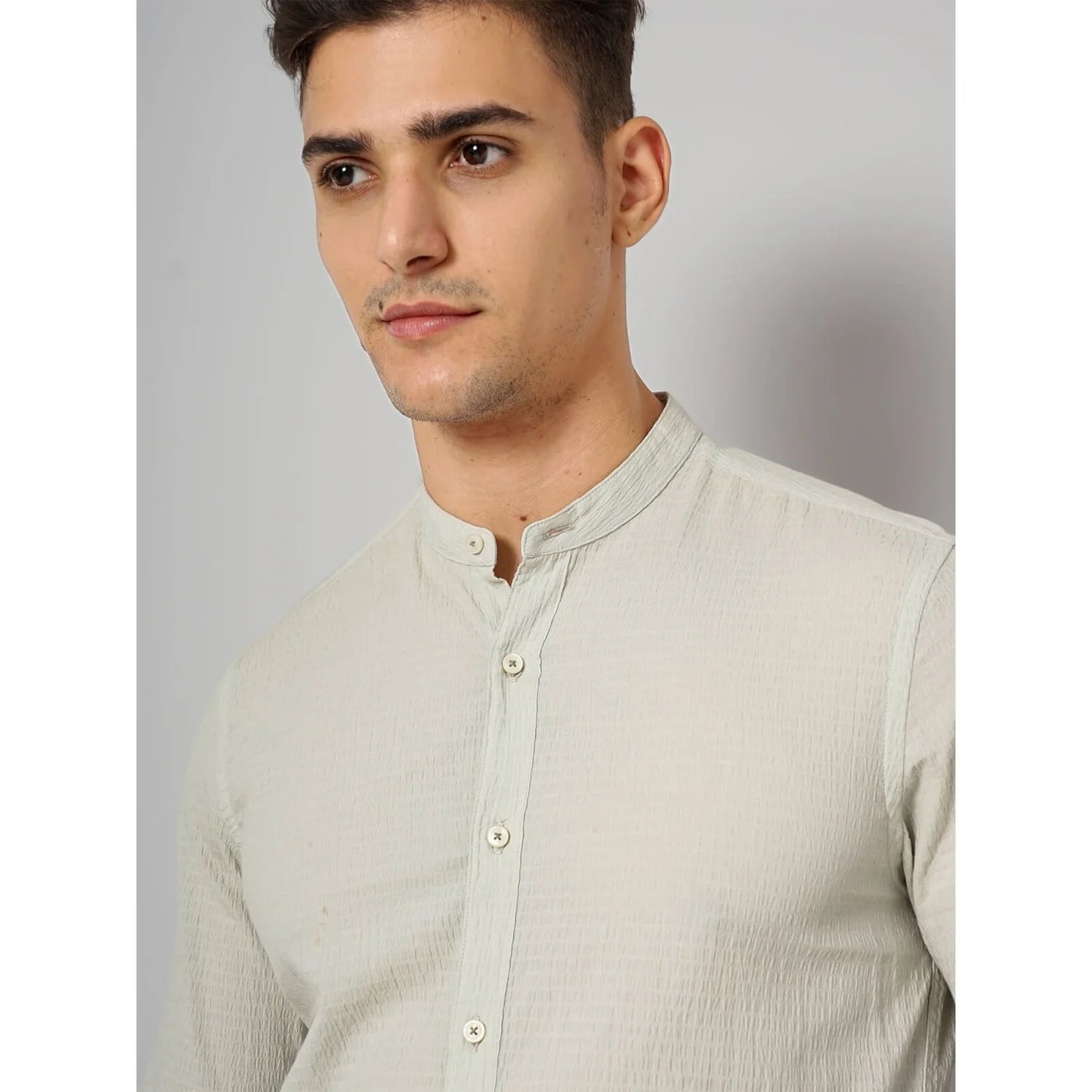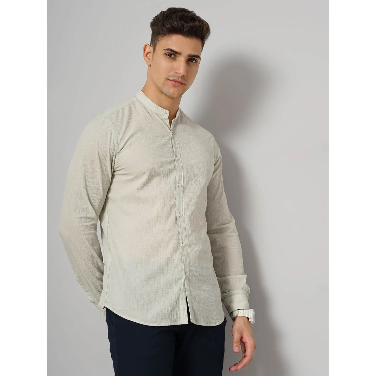 Discover the Celio Offwhite Cotton-Blend Shirt in Facotstru Beige. This Green long-sleeve shirt is perfect for casual occasions, providing comfort and style for men. Disclaimer: All other items in the image are only for display purposes and will not be a part of the delivery content. Product colour may slightly vary due to photographic lighting sources. Country of Origin - India.