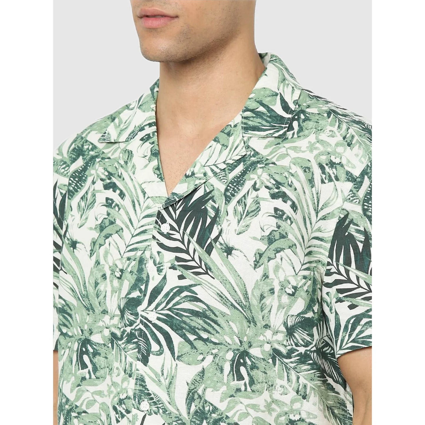 Celio* Tropical Regular Fit Cotton-Blend Green Shirt