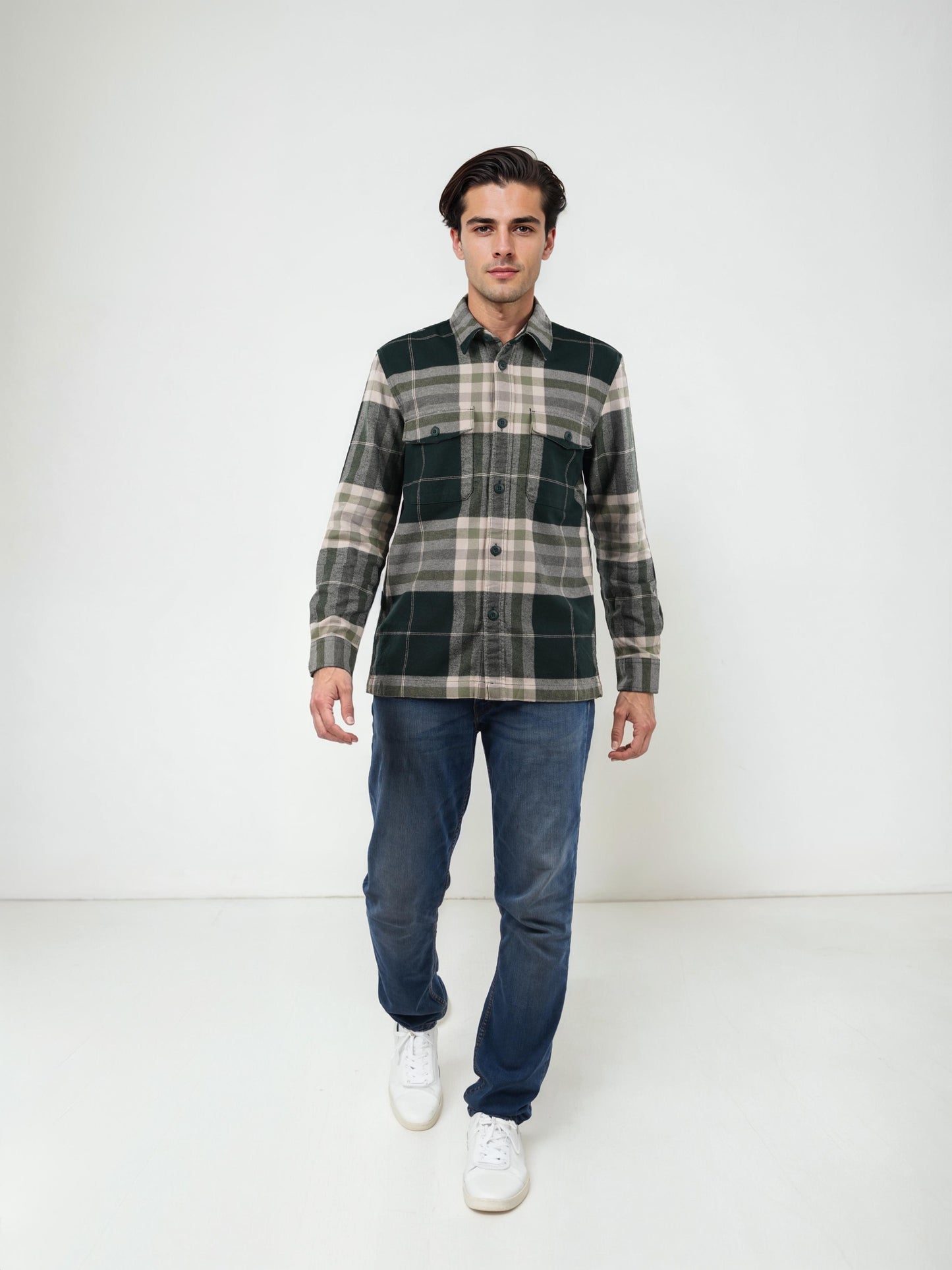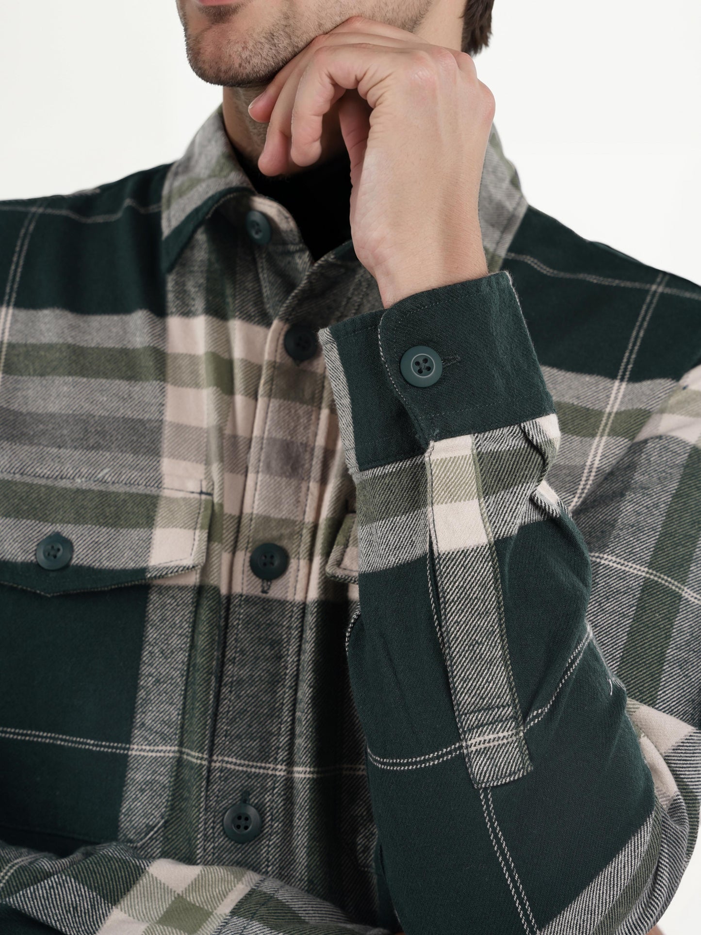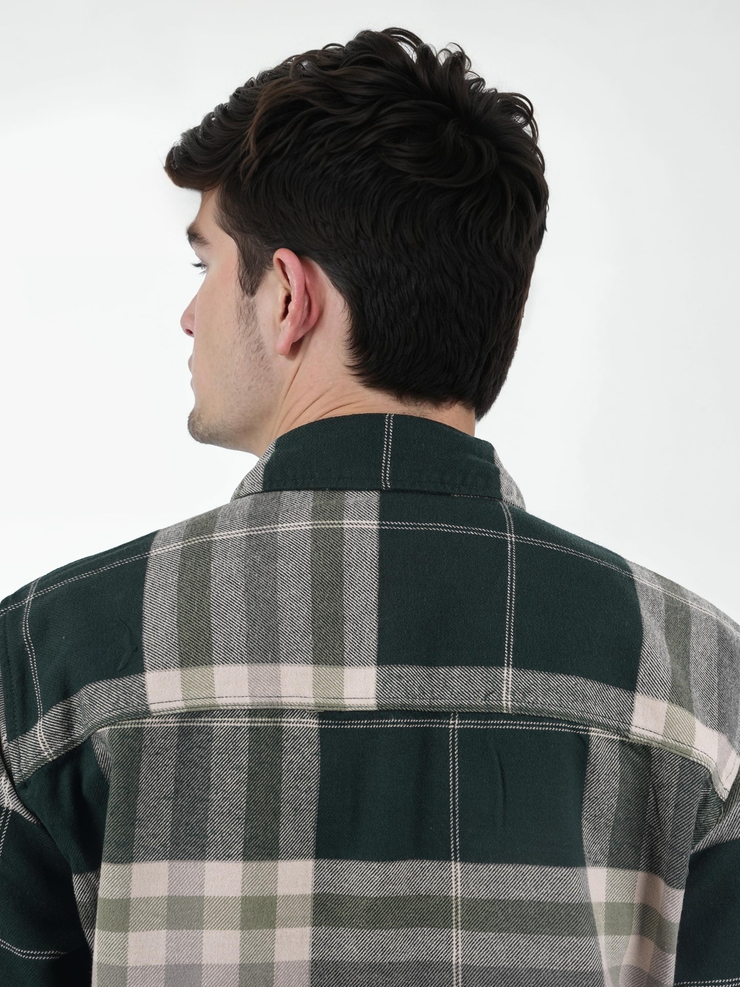 Elevate your casual style with this oversized green checked shirt by Celio. Crafted from soft cotton, it features long sleeves and a trendy spread collar, perfect for any occasion. Disclaimer: All other items in the image are only for display purposes and will not be a part of the delivery content. Product colour may slightly vary due to photographic lighting sources. Country of Origin - India.
