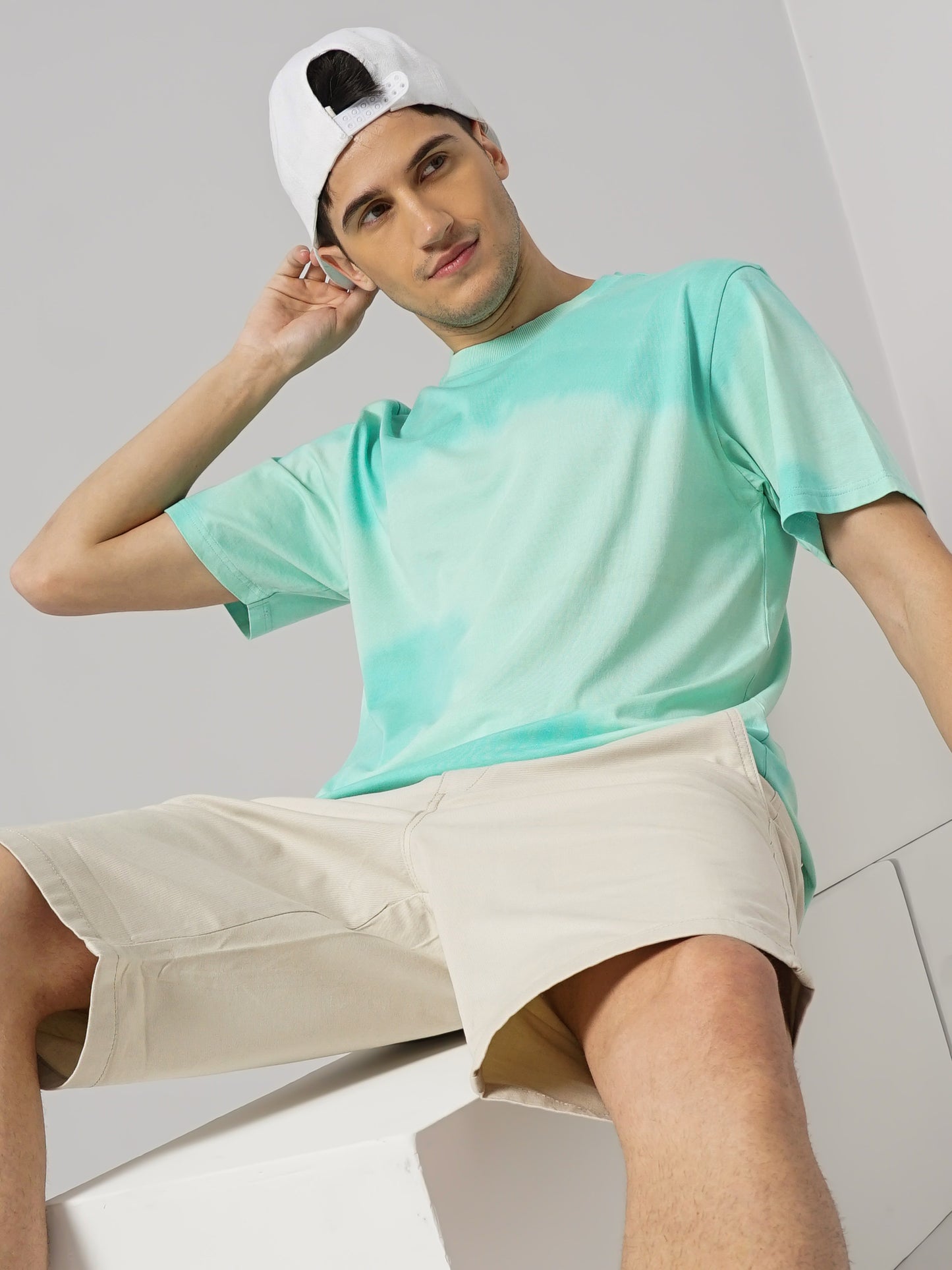Celio* Dyed Regular Fit Cotton Green T-Shirt