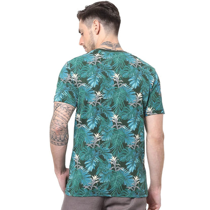 Celio* Floral Regular Fit Cotton Green T-Shirt