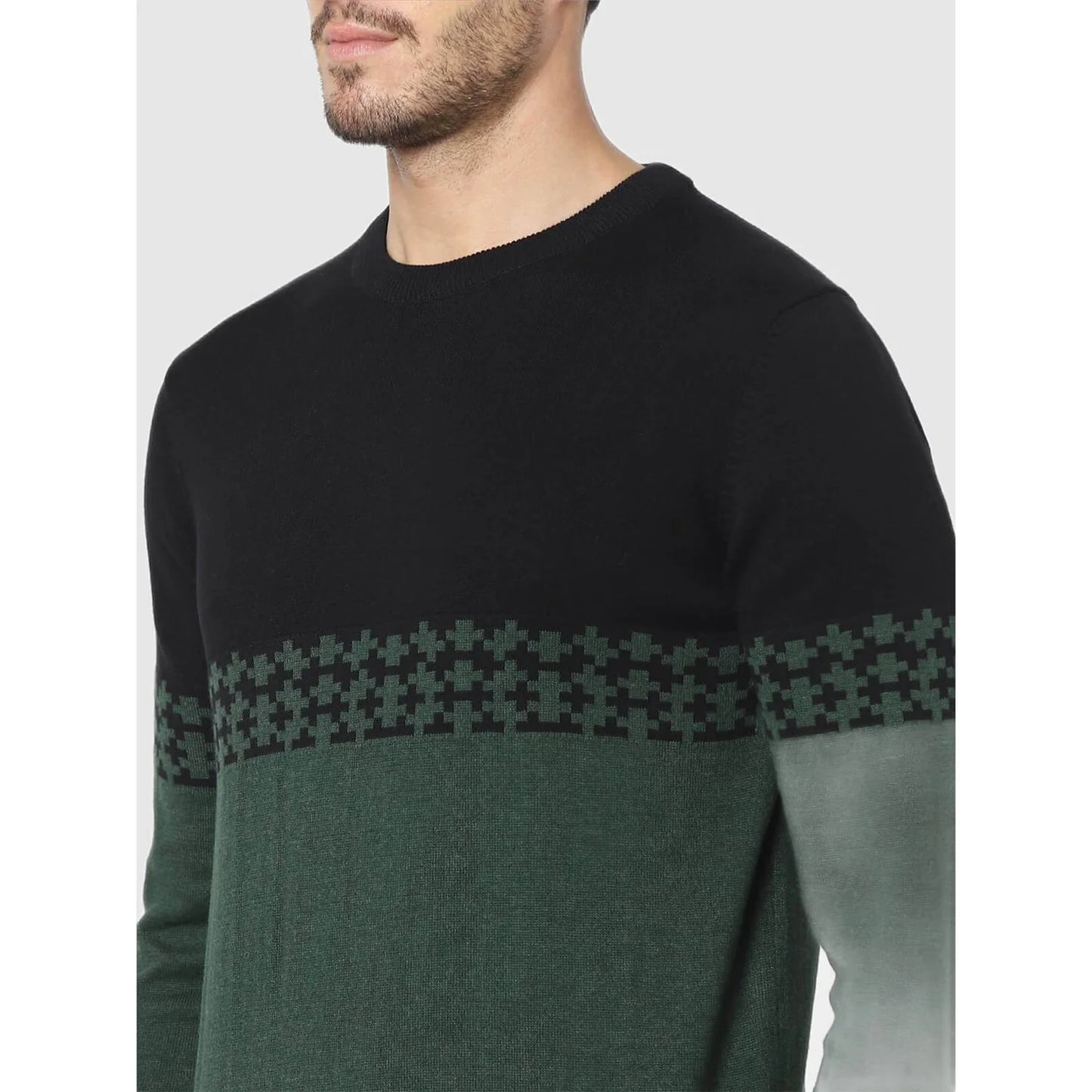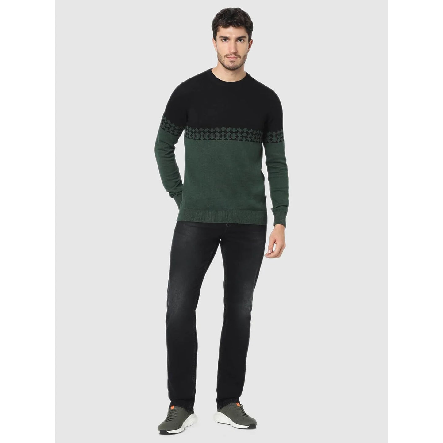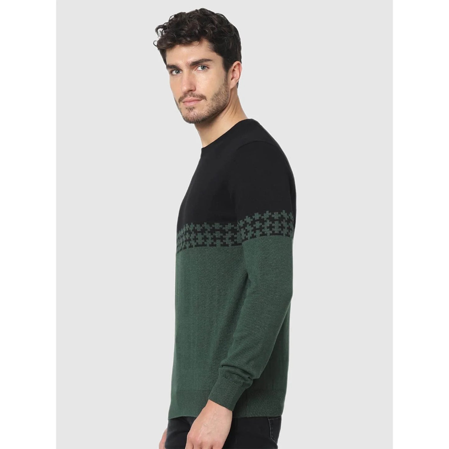 Celio* Geometric Regular Fit Cotton Green Sweater