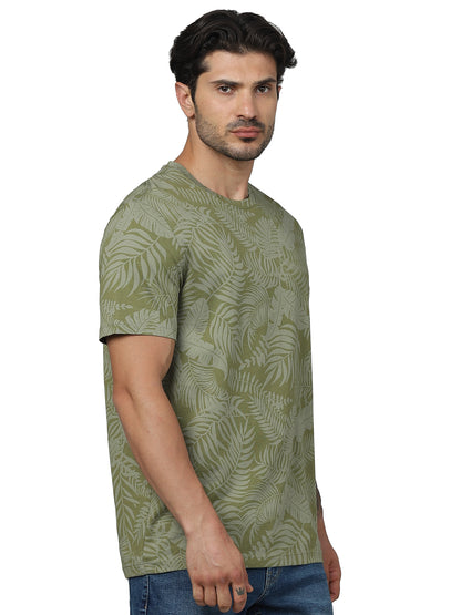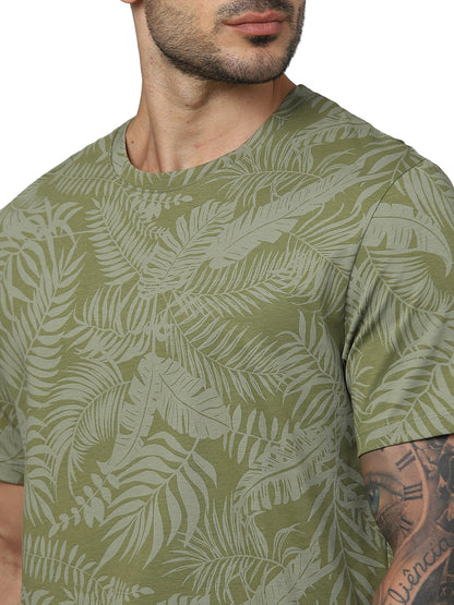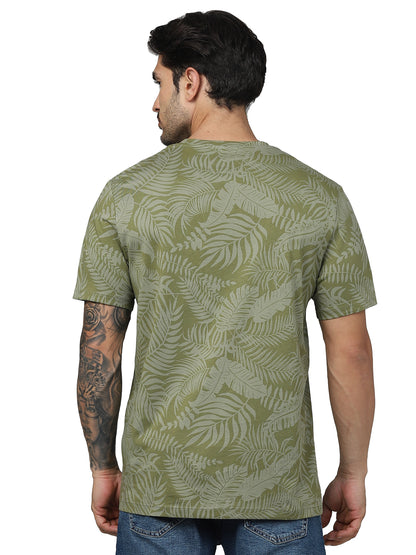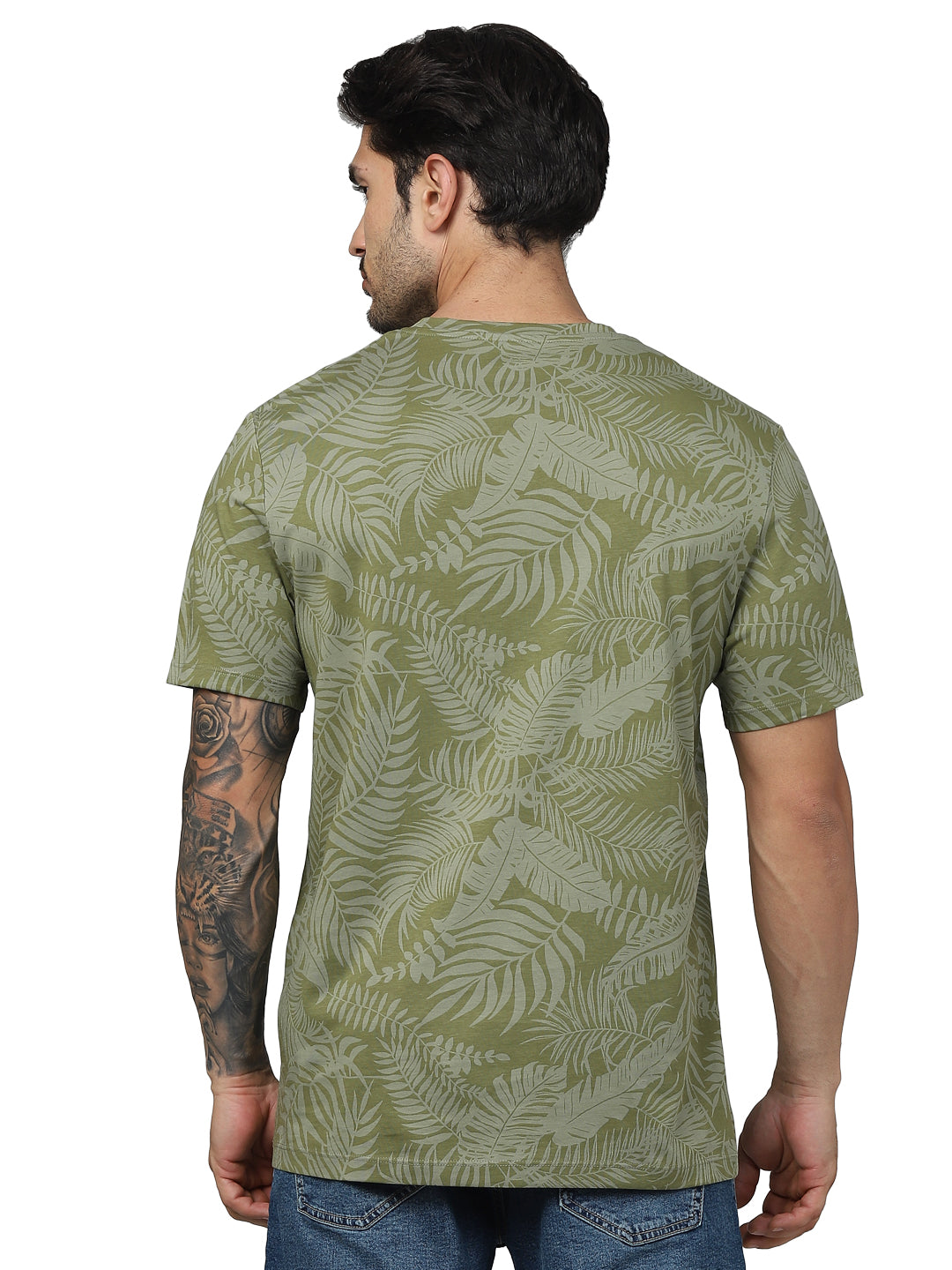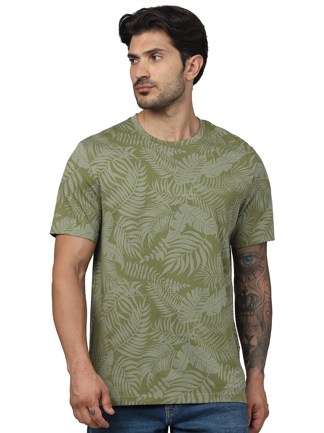 Elevate your casual wardrobe with the Celio Men green Round Neck T-shirt. Crafted from cotton, it features a trendy all over print and short sleeves for a stylish look. Disclaimer: All other items in the image are only for display purposes and will not be a part of the delivery content. Product colour may slightly vary due to photographic lighting sources. Country of Origin - India.