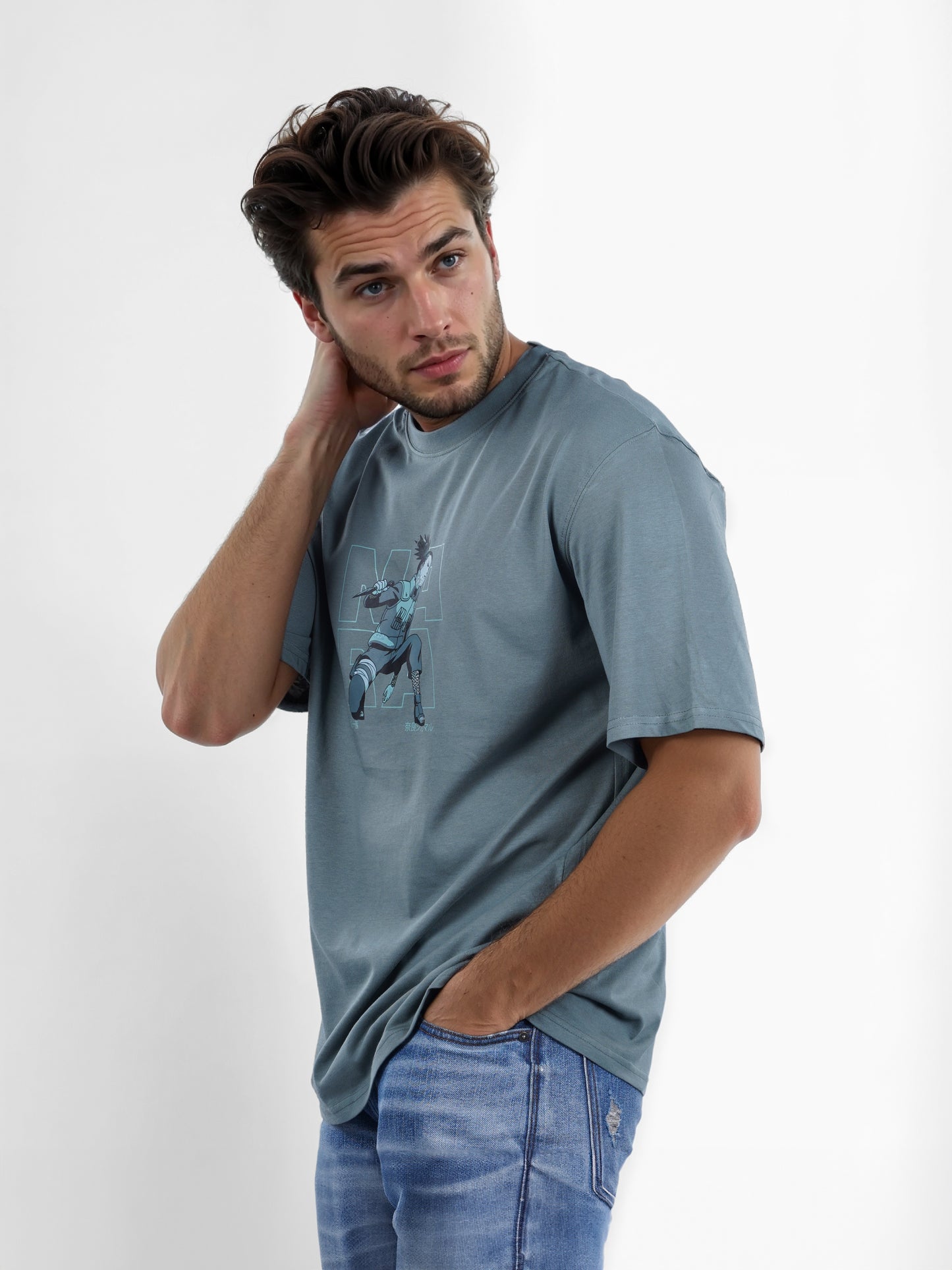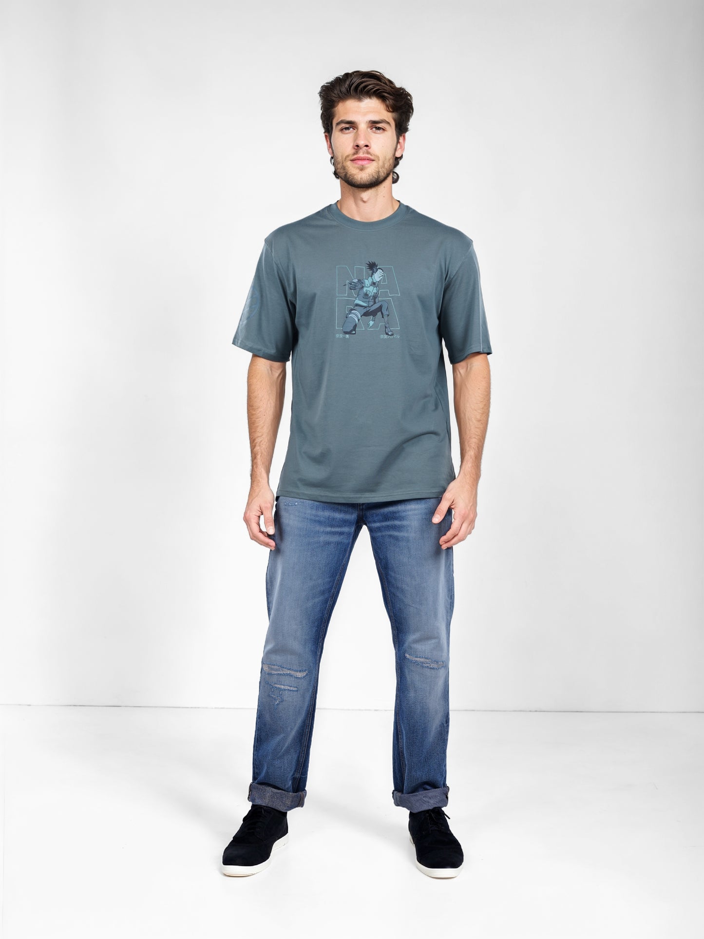 Celio* Naruto Oversized Cotton Green T-Shirts