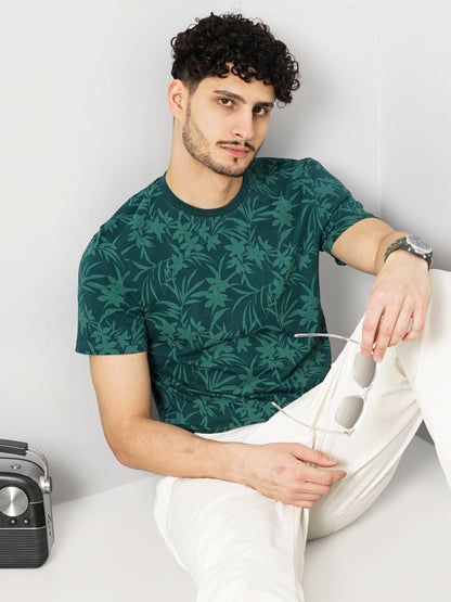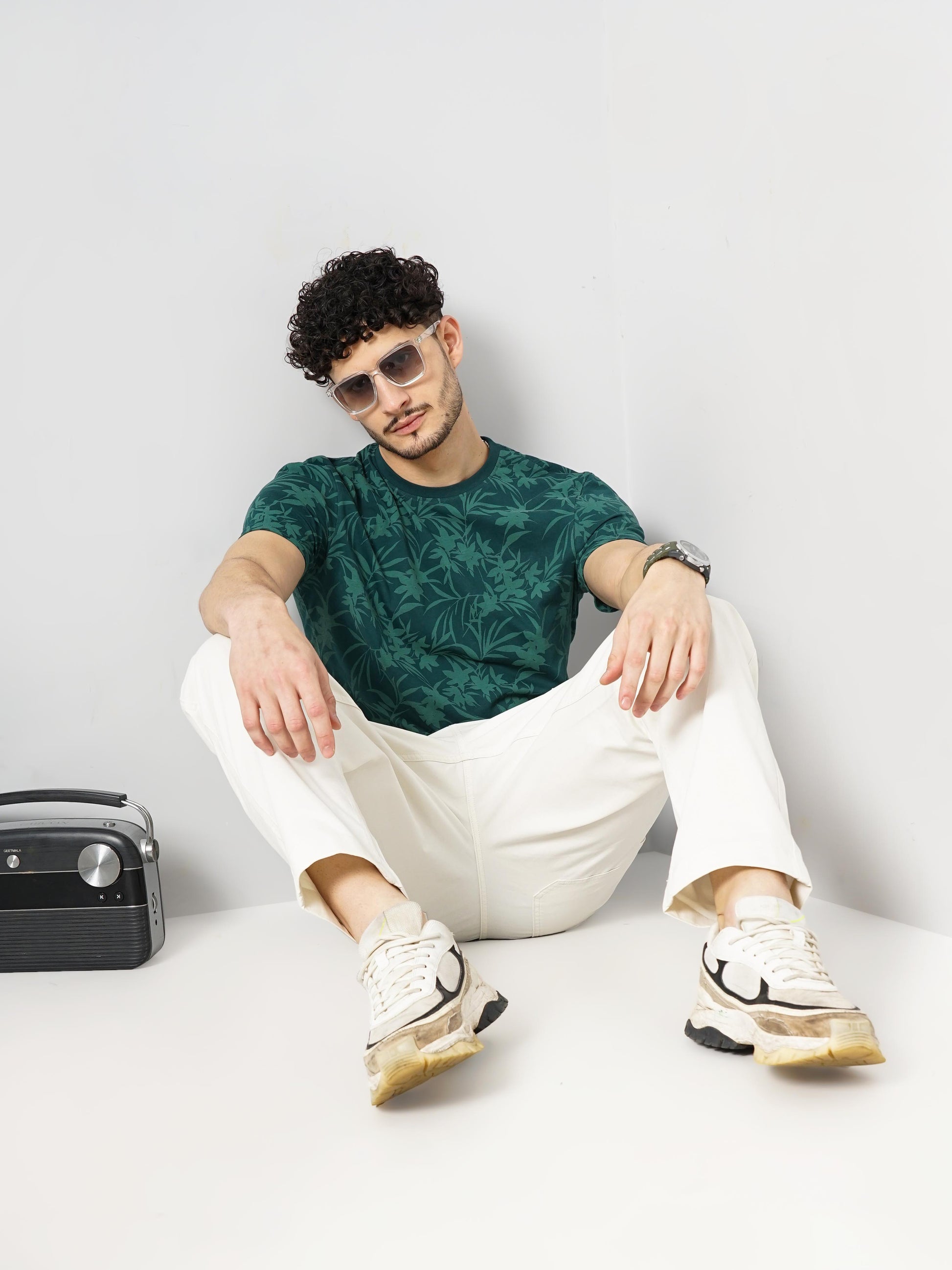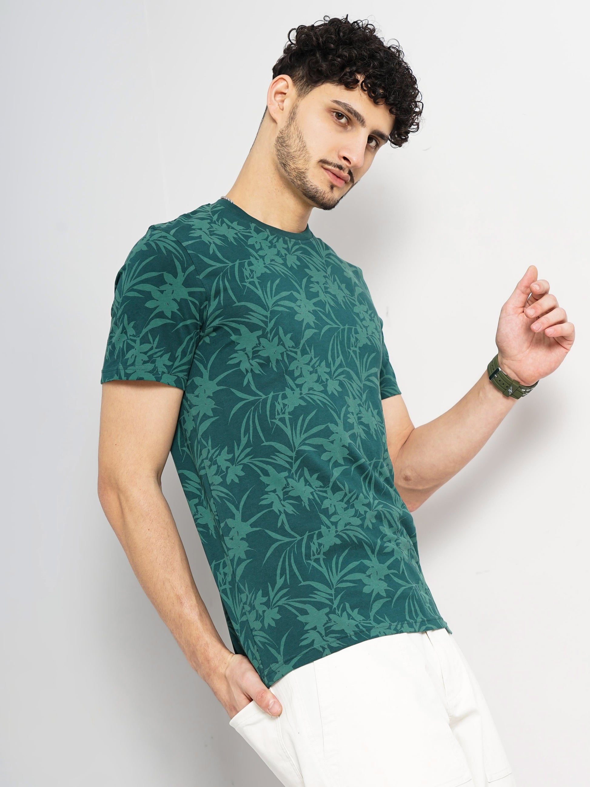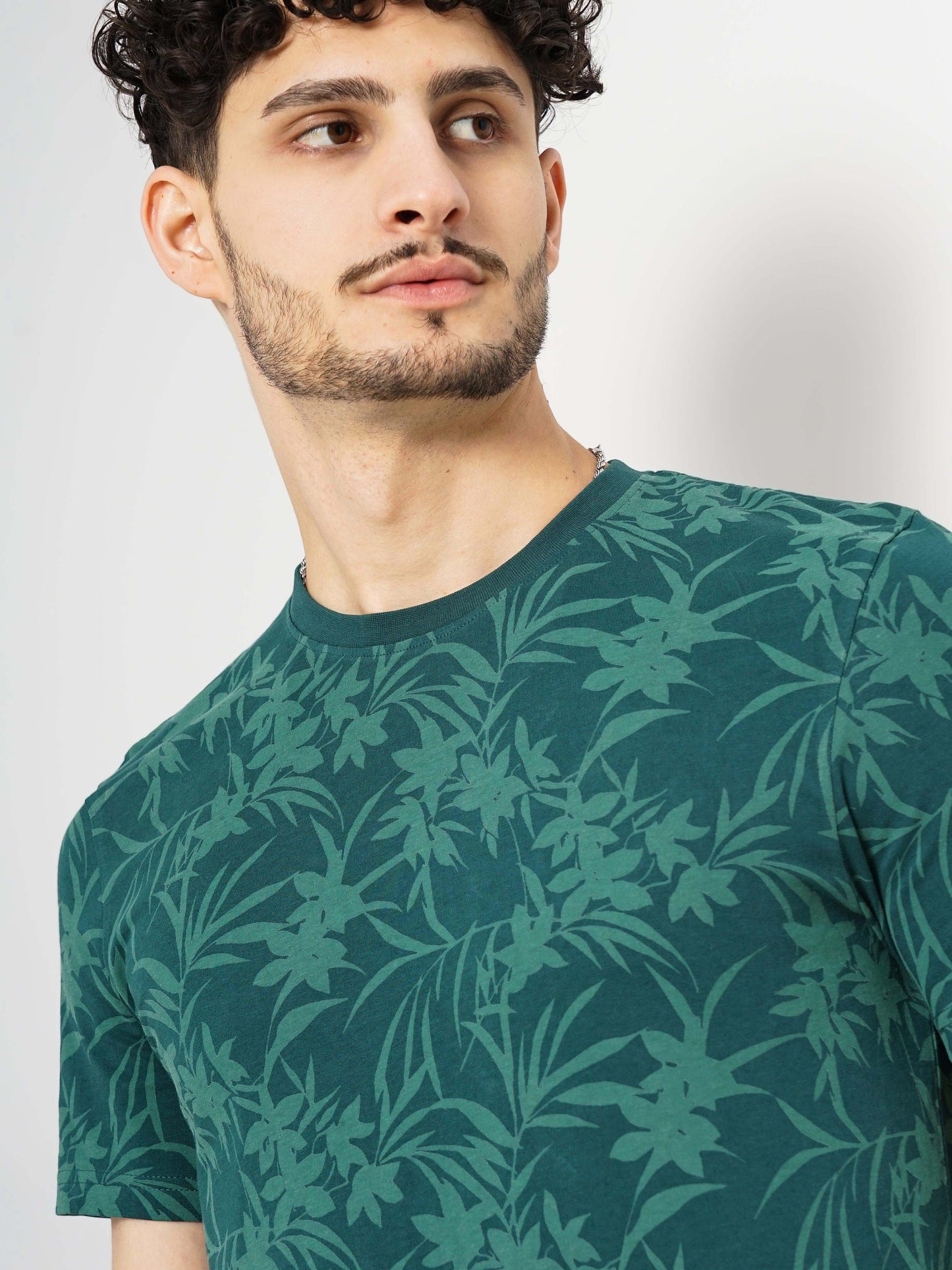 Elevate your casual wear with the Celio Men Printed T-shirt in vibrant green. Made from comfortable cotton, it features a stylish all-over print and short sleeves, perfect for any relaxed occasion. Disclaimer: All other items in the image are only for display purposes and will not be a part of the delivery content. Product colour may slightly vary due to photographic lighting sources. Country of Origin - India.