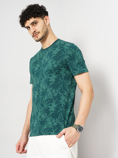 Celio* Printed Regular Fit Cotton Green T-Shirt