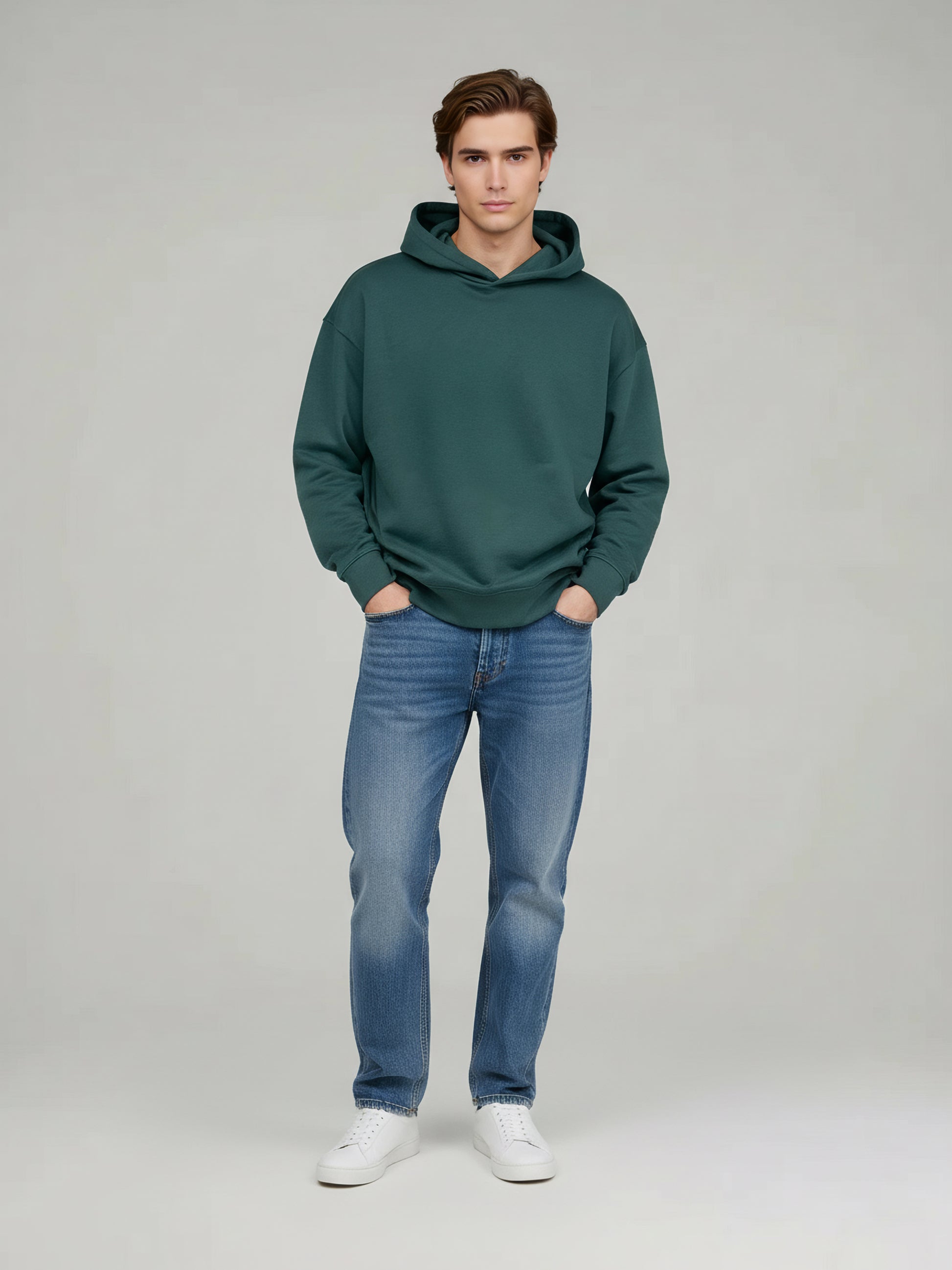 Celio Men Green Solid Oversize Cotton Sweatshirts