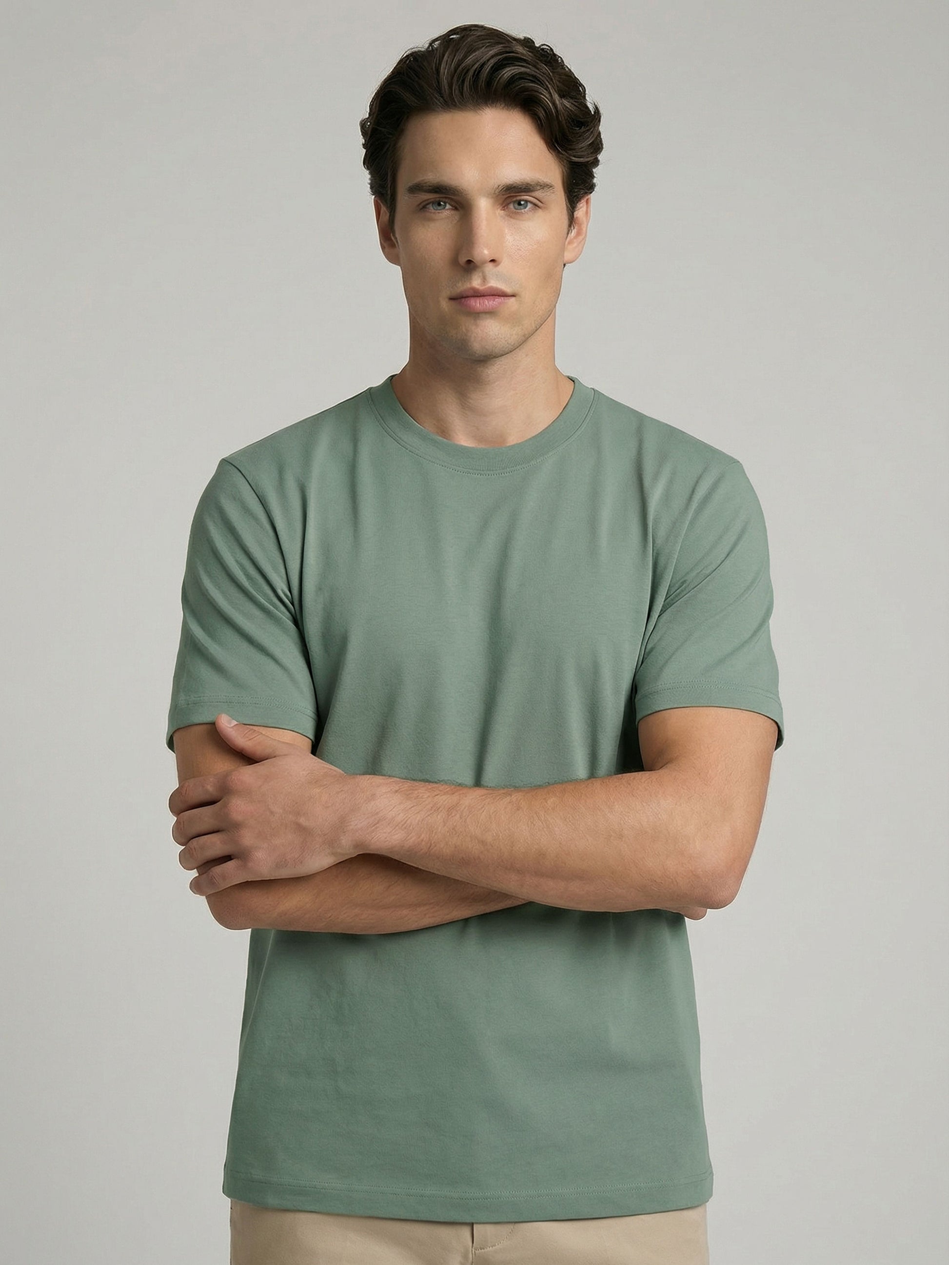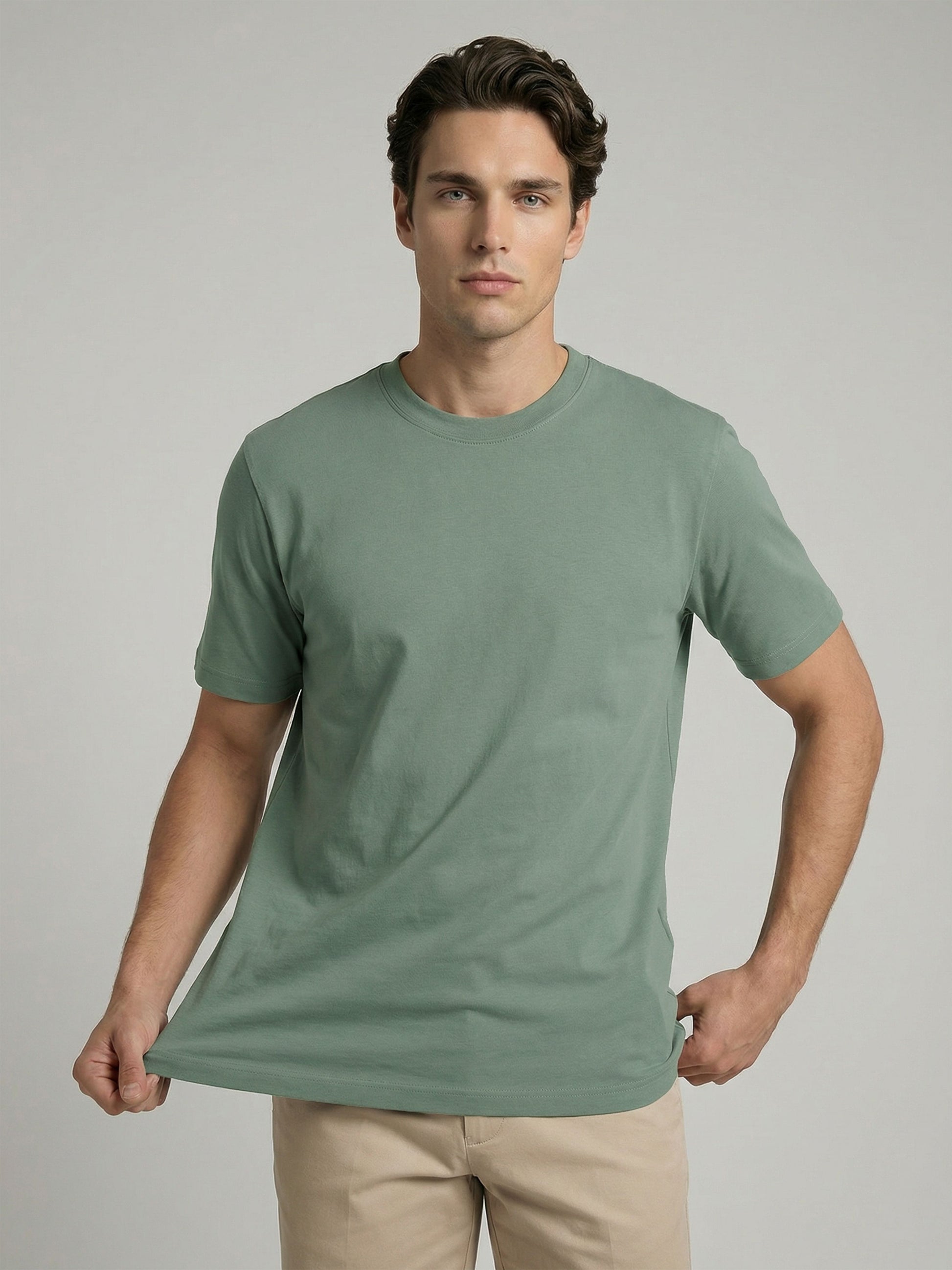 Celio* Men Green Solid Oversized Cotton T-Shirts