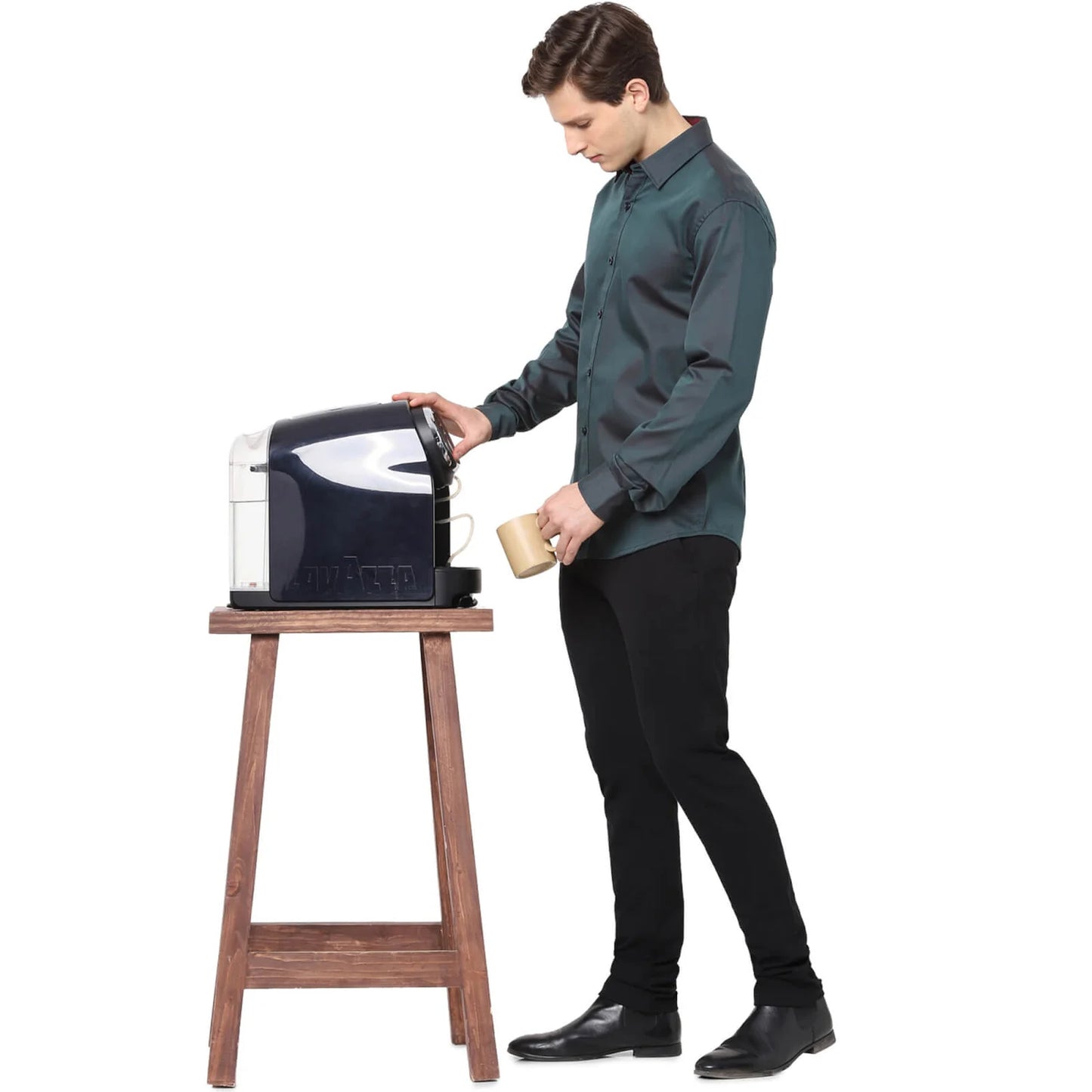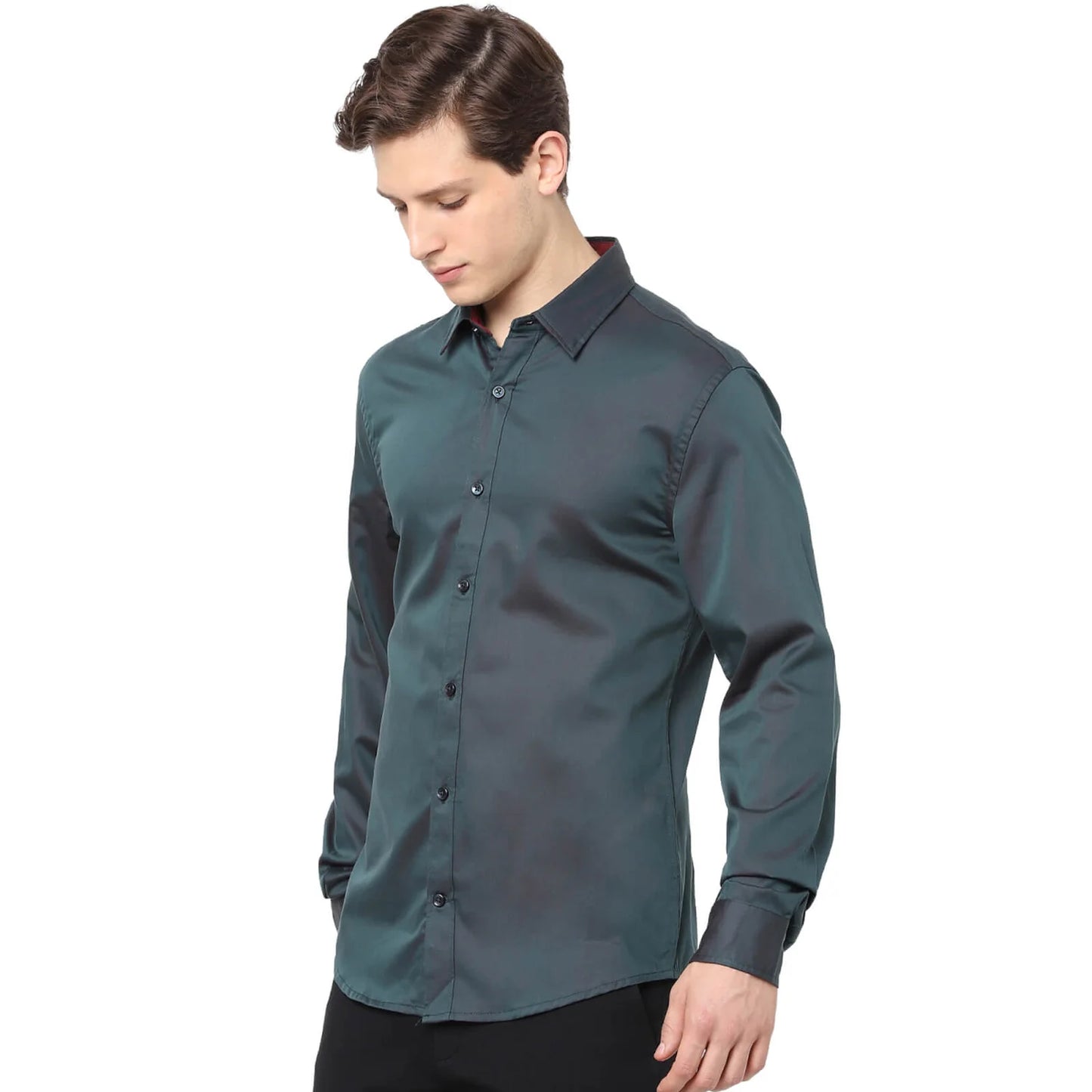 Explore style with the Celio Men's Dark Green Full Sleeves Shirt. Made from soft cotton, this long-sleeved casual shirt is perfect for every man's wardrobe. Disclaimer: All other items in the image are only for display purposes and will not be a part of the delivery content. Product colour may slightly vary due to photographic lighting sources. Country of Origin - India.