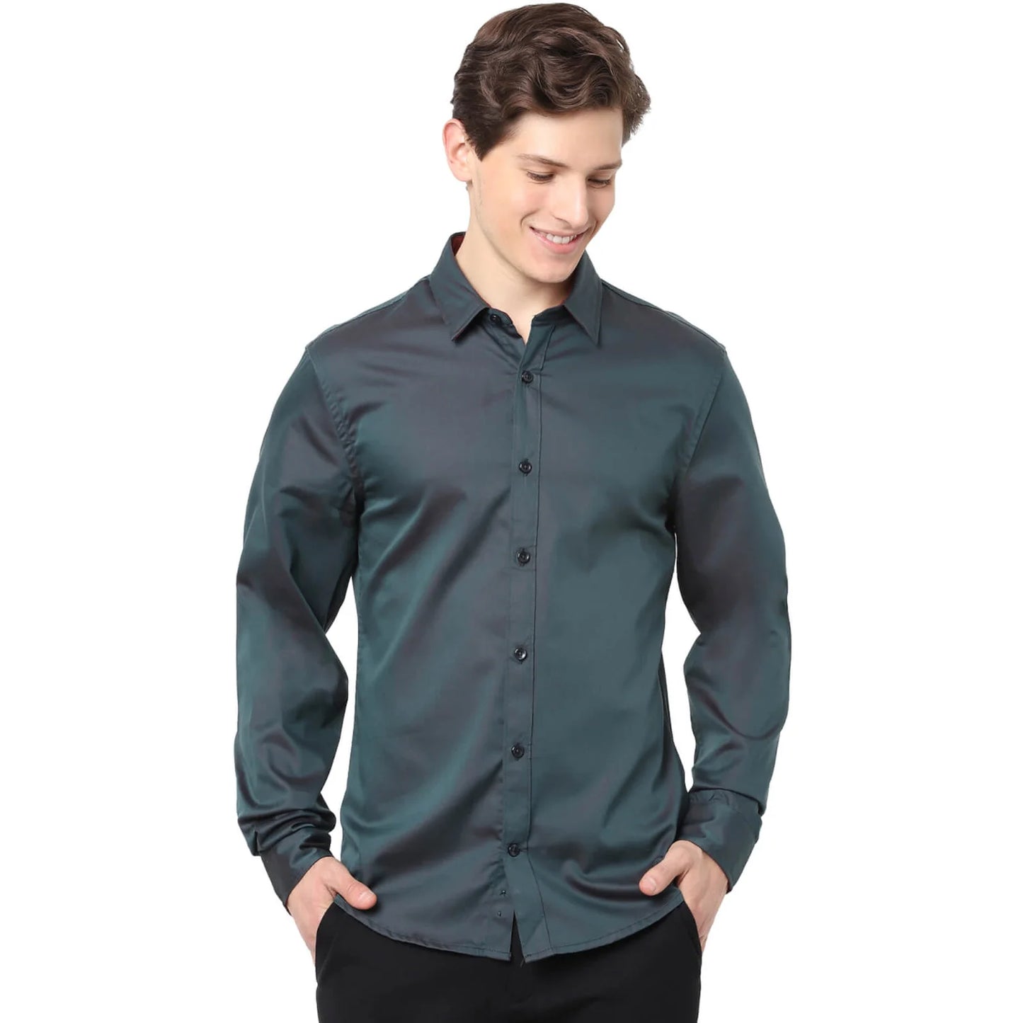 Celio* Solid Regular Fit Cotton Green Formal Shirt