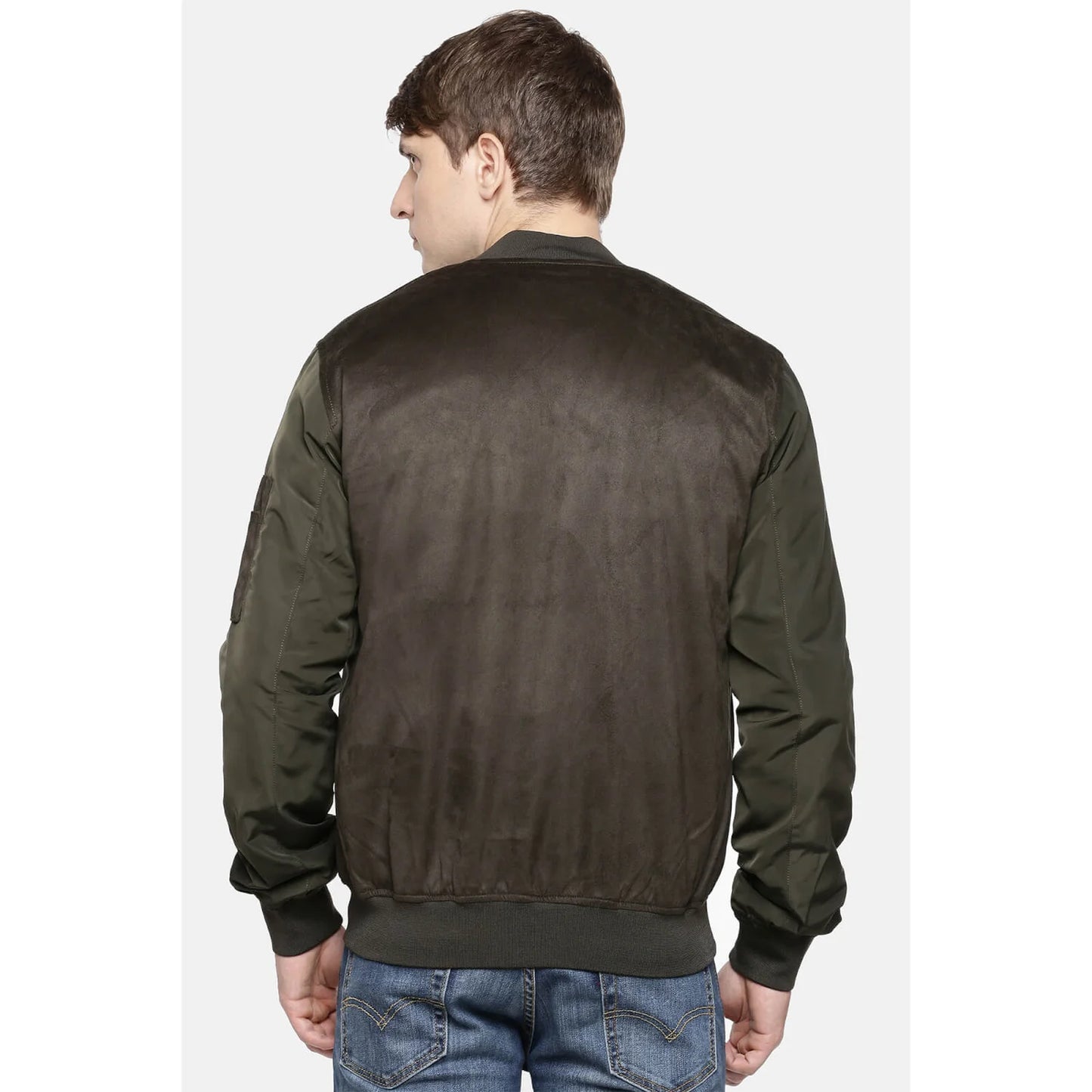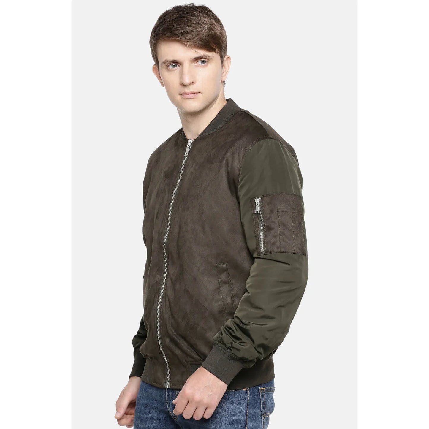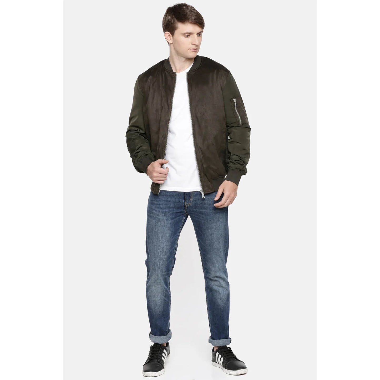 Elevate your casual style with the Celio Men's Olive Solid Bomber Jacket. Crafted from cotton, this long-sleeve jacket offers comfort and a trendy look for men. Disclaimer: All other items in the image are only for display purposes and will not be a part of the delivery content. Product colour may slightly vary due to photographic lighting sources. Country of Origin - India.