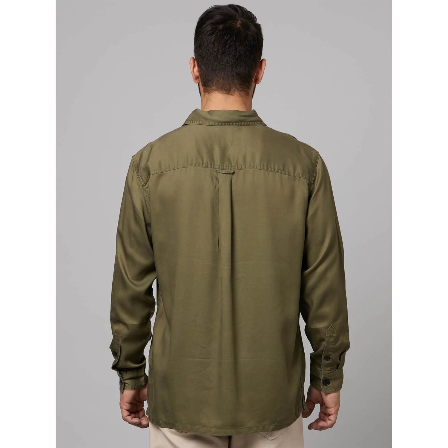 The Celio Men's Olive Overshirt in green is perfect for casual occasions. Crafted from comfortable cotton, it features long sleeves, making it a versatile addition to any wardrobe. Disclaimer: All other items in the image are only for display purposes and will not be a part of the delivery content. Product colour may slightly vary due to photographic lighting sources. Country of Origin - India.