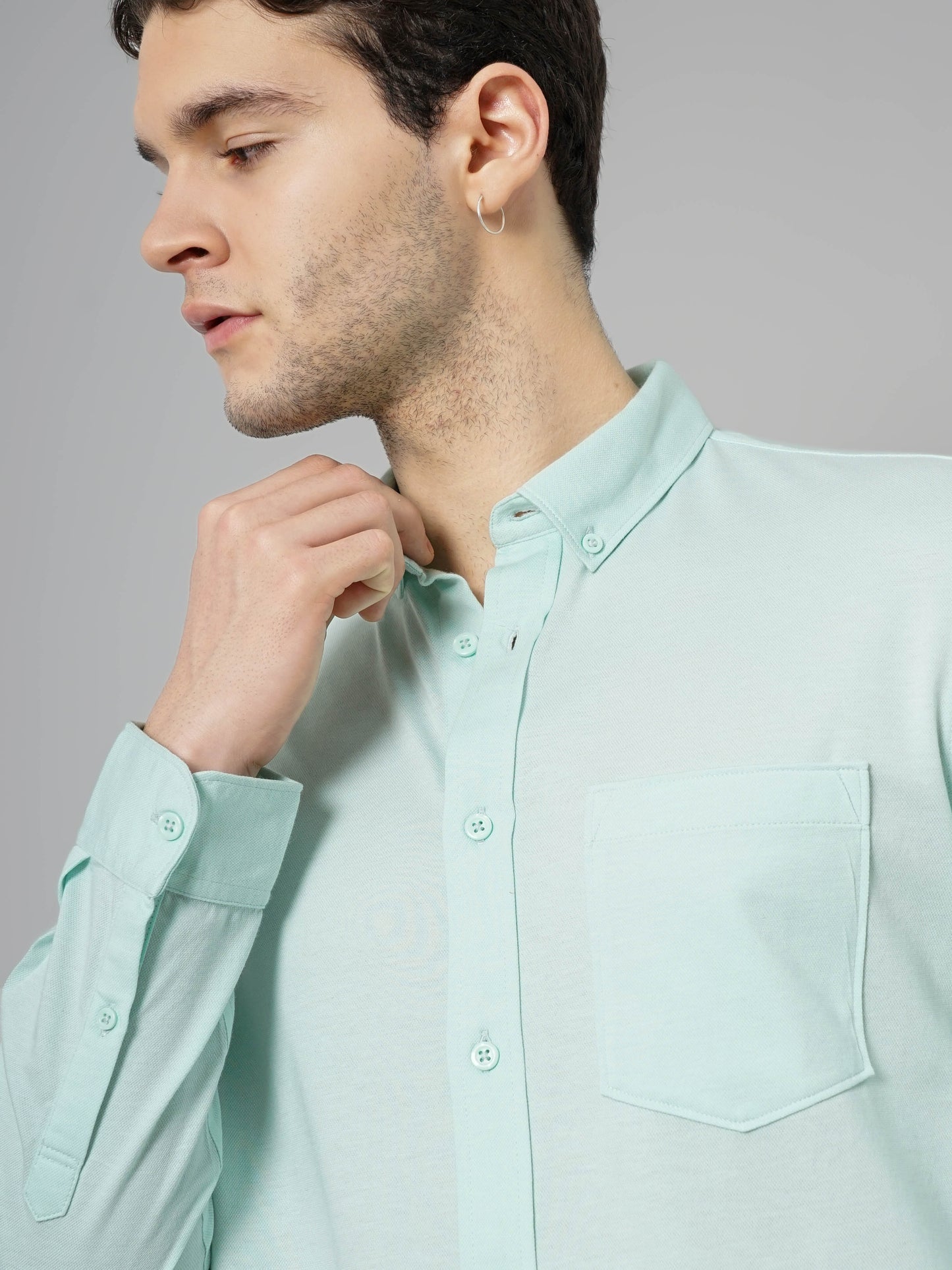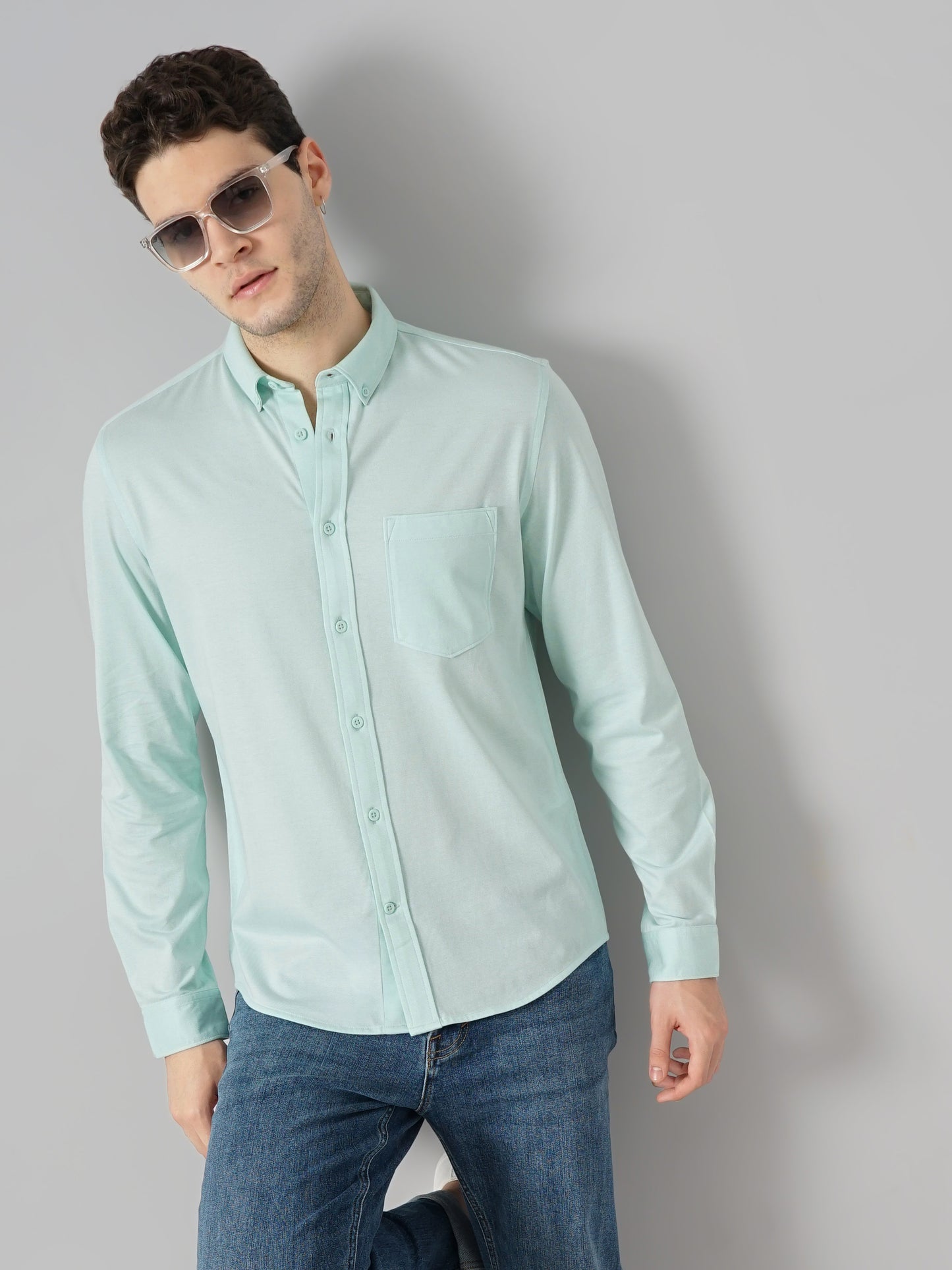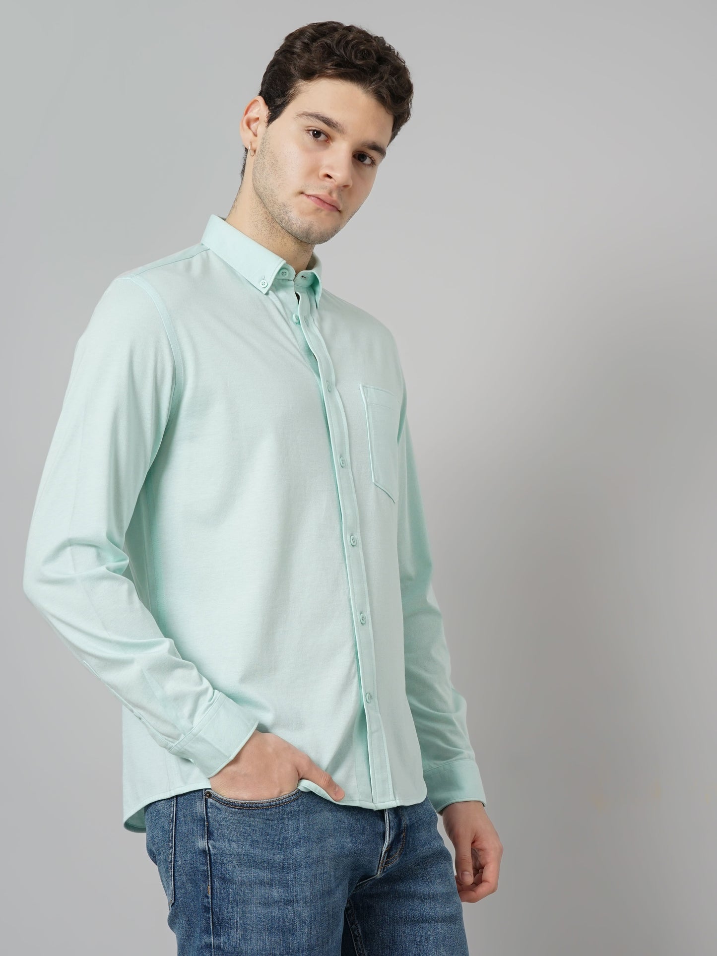 Explore casual comfort with Celio's Men Solid Regular Fit Cotton Knit Shirt in green. Crafted from soft cotton, this long-sleeve shirt is perfect for any casual occasion. Disclaimer: All other items in the image are only for display purposes and will not be a part of the delivery content. Product colour may slightly vary due to photographic lighting sources. Country of Origin - India.