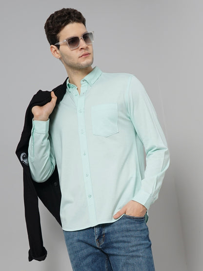 Celio* Solid Regular Fit Cotton Green Shirt