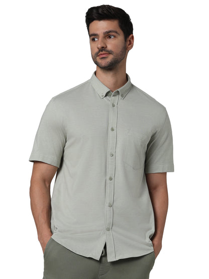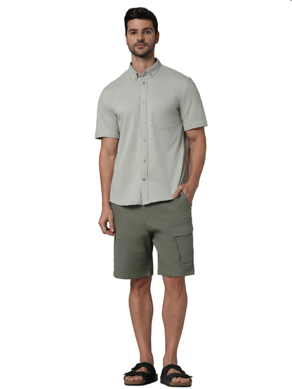 Discover the Celio Men Green Button-Down Collar Shirt, crafted from quality cotton for a comfortable fit. Perfect for casual occasions with stylish short sleeves. Disclaimer: All other items in the image are only for display purposes and will not be a part of the delivery content. Product colour may slightly vary due to photographic lighting sources. Country of Origin - India.