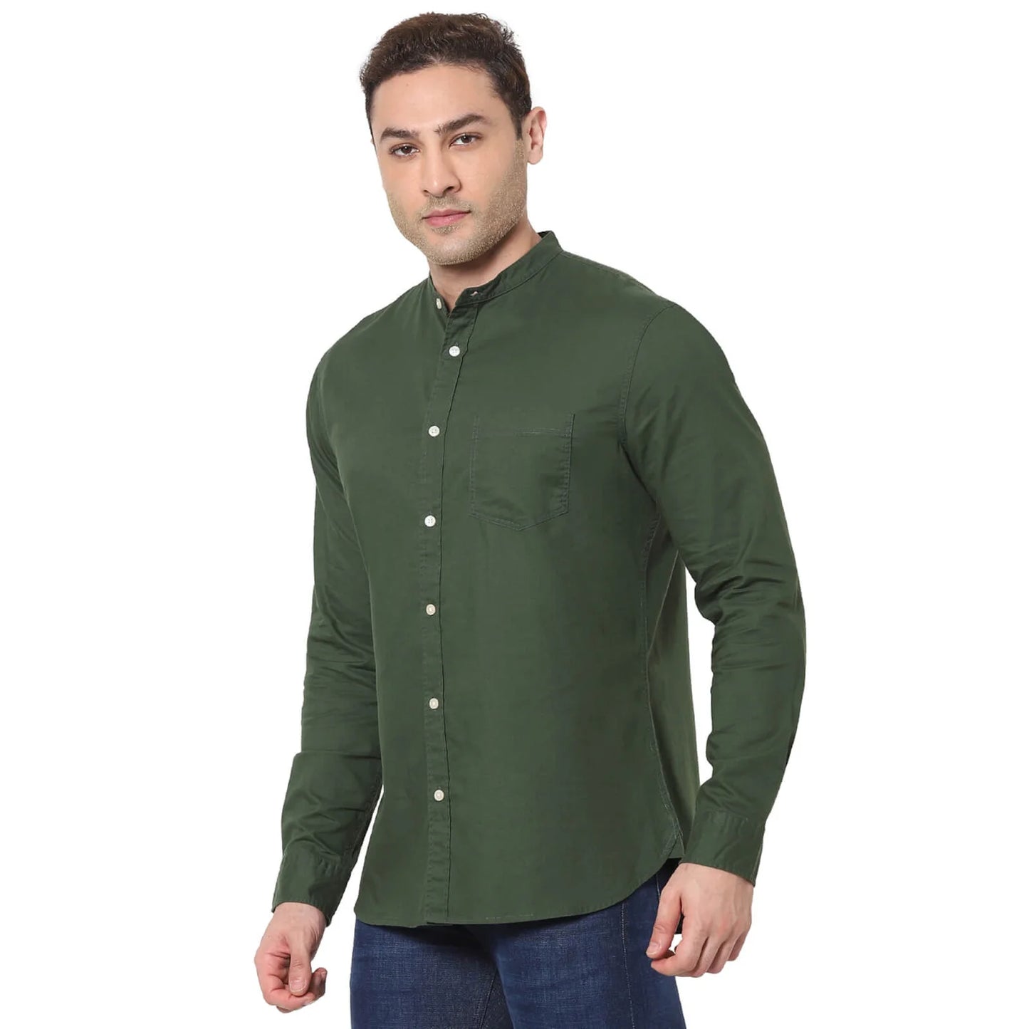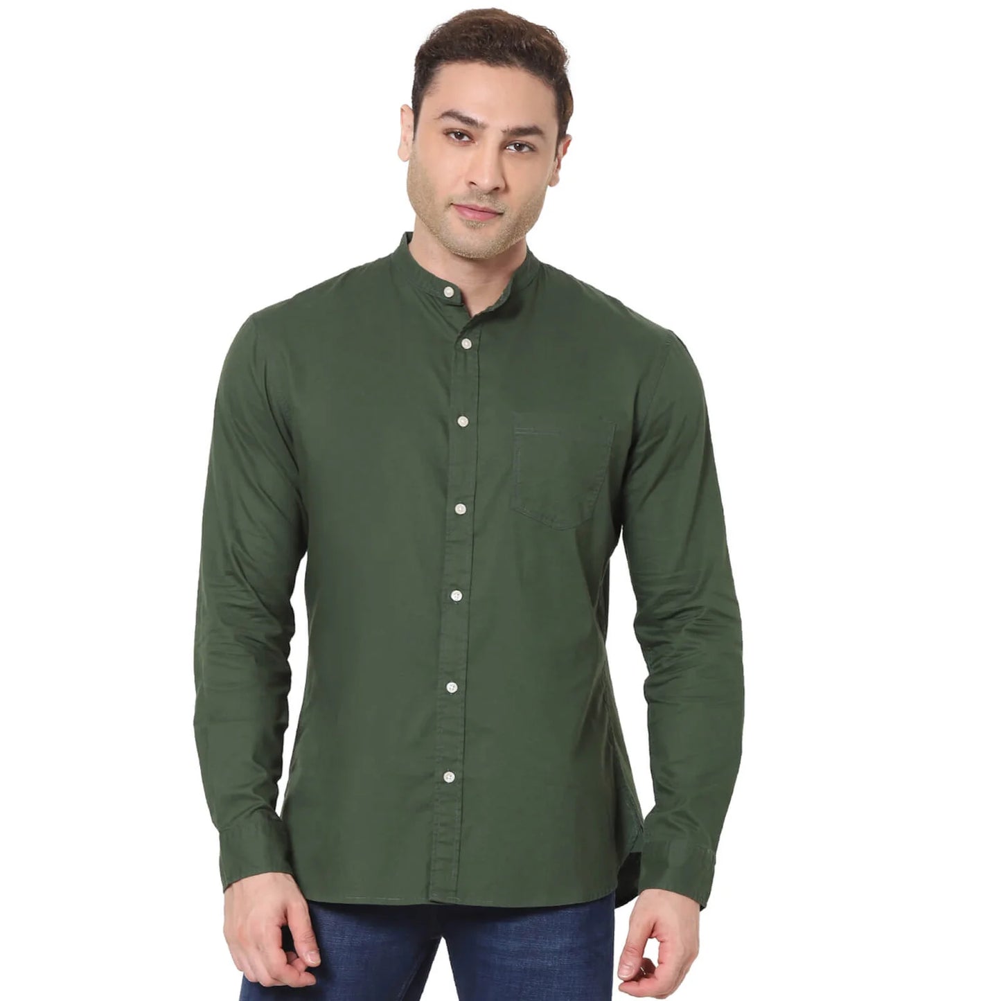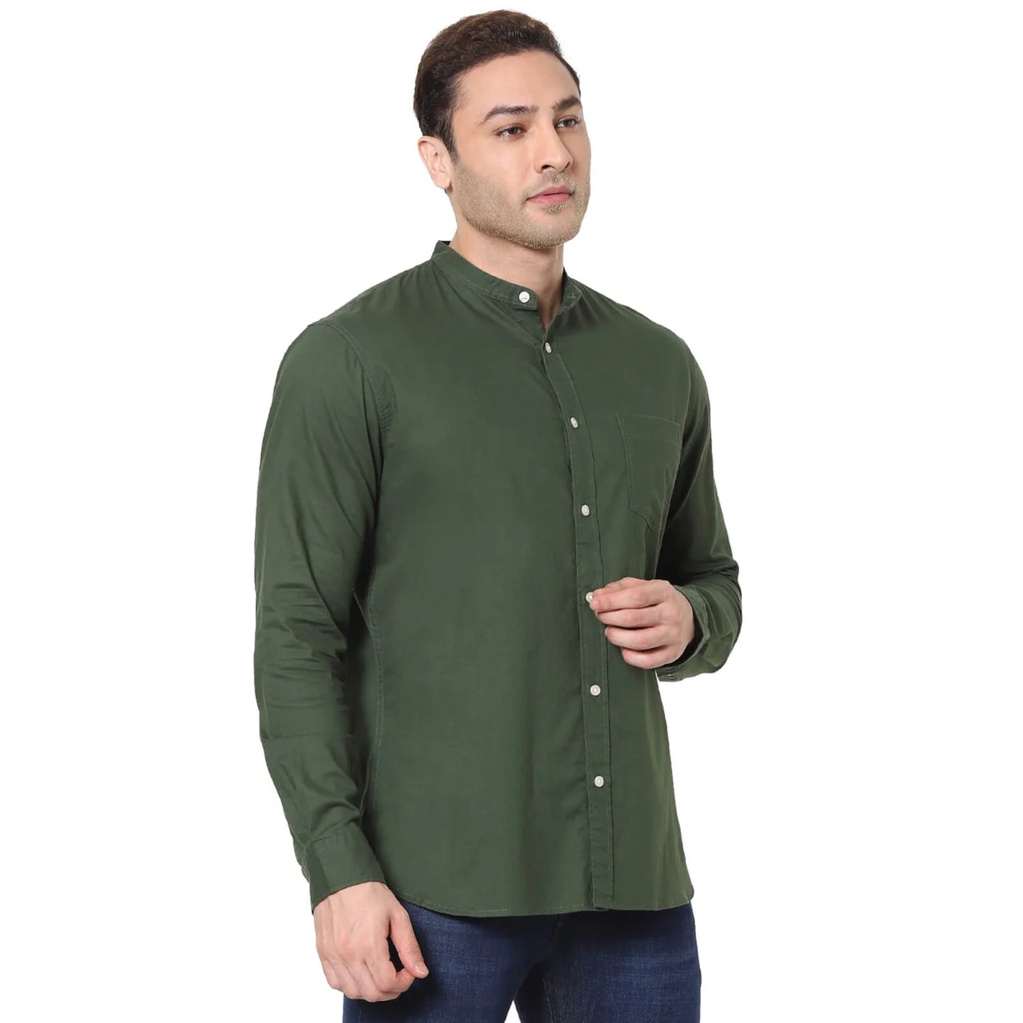 Elevate your casual wardrobe with the Celio Men's Dark Green Solid Casual Shirt. Made from comfortable cotton, it features long sleeves and is perfect for any relaxed occasion. Disclaimer: All other items in the image are only for display purposes and will not be a part of the delivery content. Product colour may slightly vary due to photographic lighting sources. Country of Origin - India.