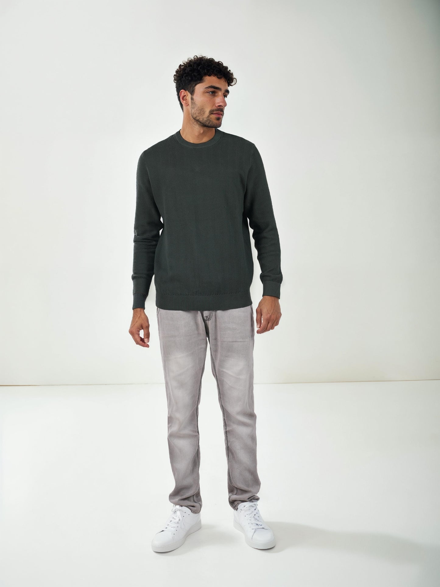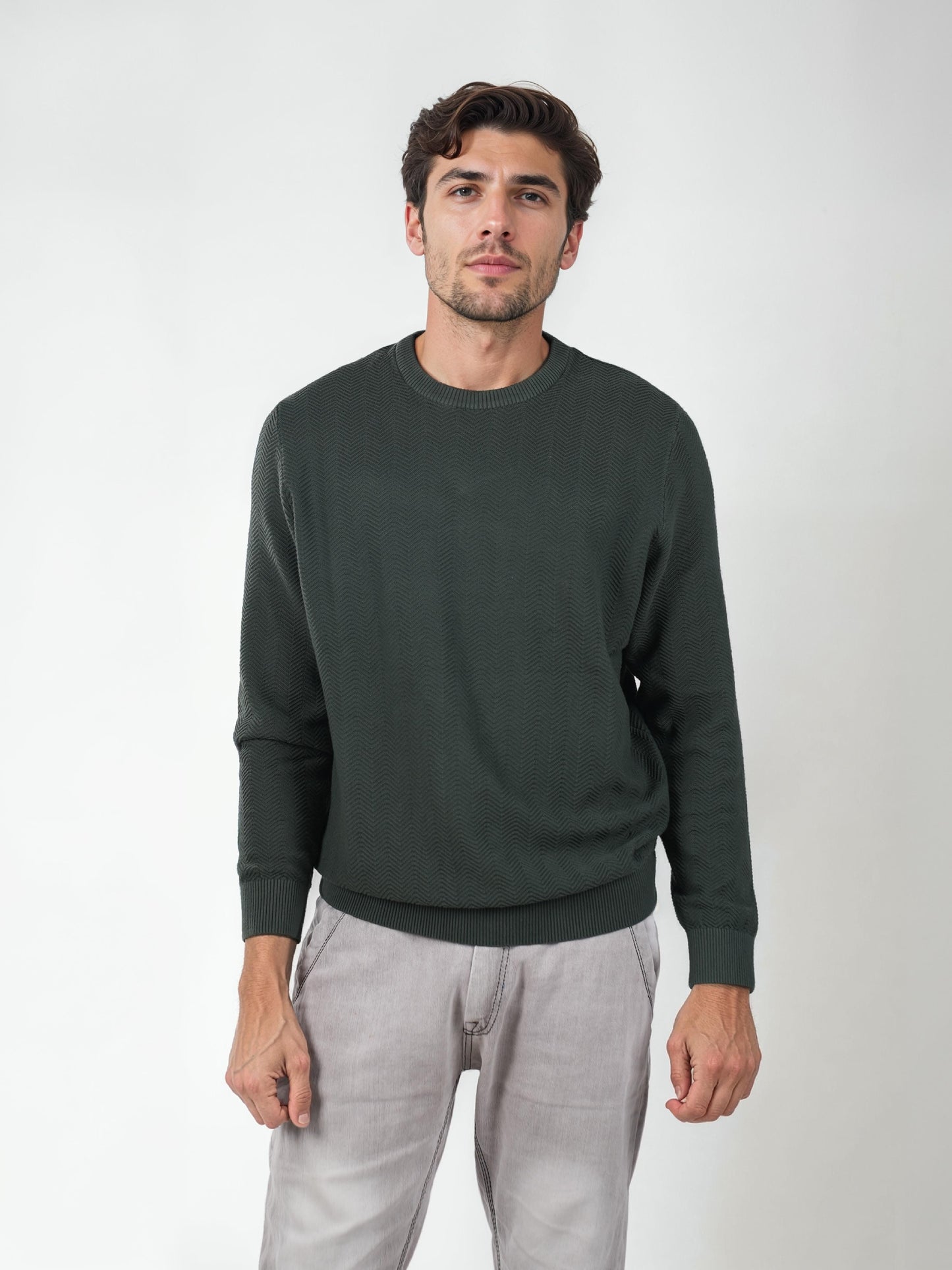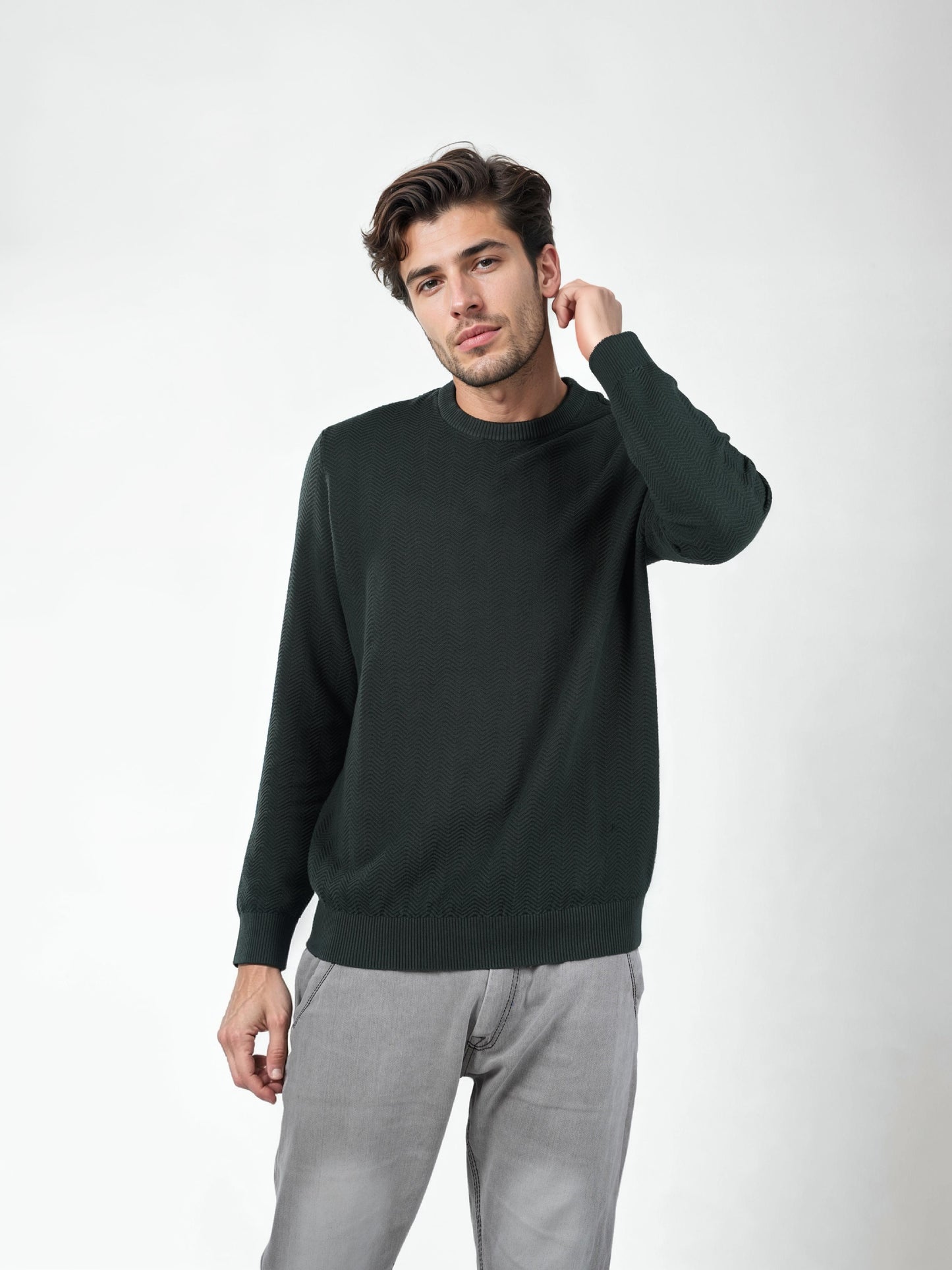 Stay stylish and comfortable with the Celio Men's Green Round Neck Cotton Sweater. Perfect for casual occasions, it features long sleeves and a regular fit for ease. Disclaimer: All other items in the image are only for display purposes and will not be a part of the delivery content. Product colour may slightly vary due to photographic lighting sources. Country of Origin - India.