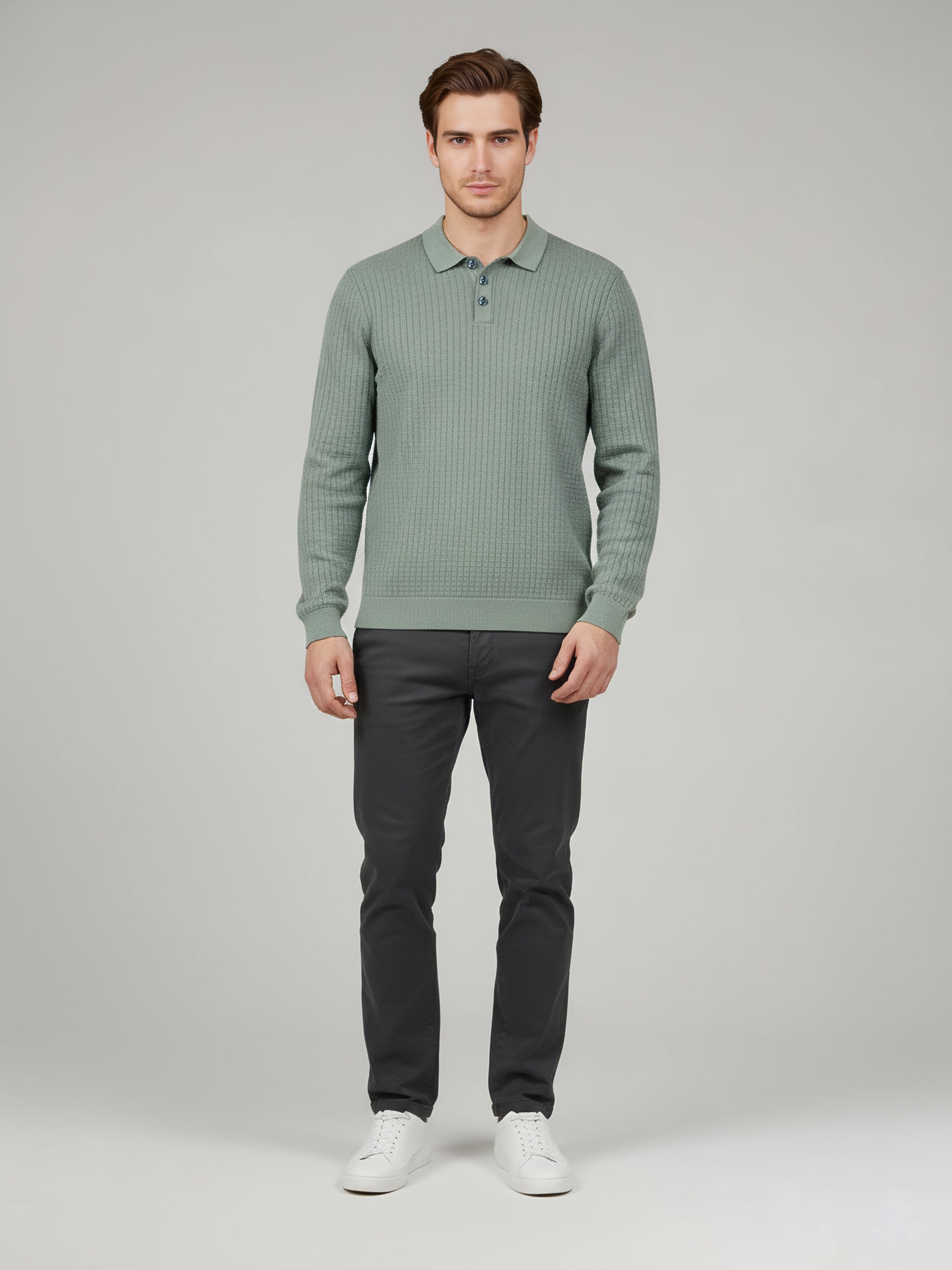 Elevate your casual look with the Celio Men Green Solid Sweater. Made from a comfortable cotton-viscose blend, it features long sleeves and a regular fit, perfect for any outing. Disclaimer: All other items in the image are only for display purposes and will not be a part of the delivery content. Product colour may slightly vary due to photographic lighting sources. Country of Origin - India.