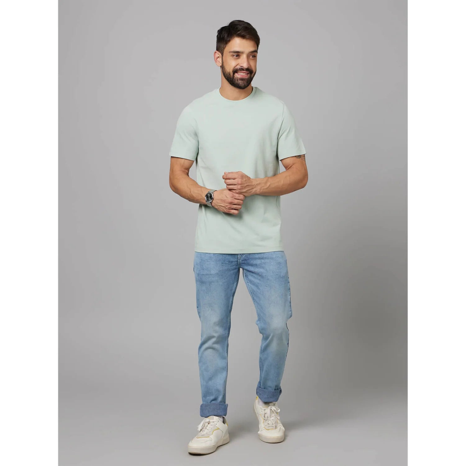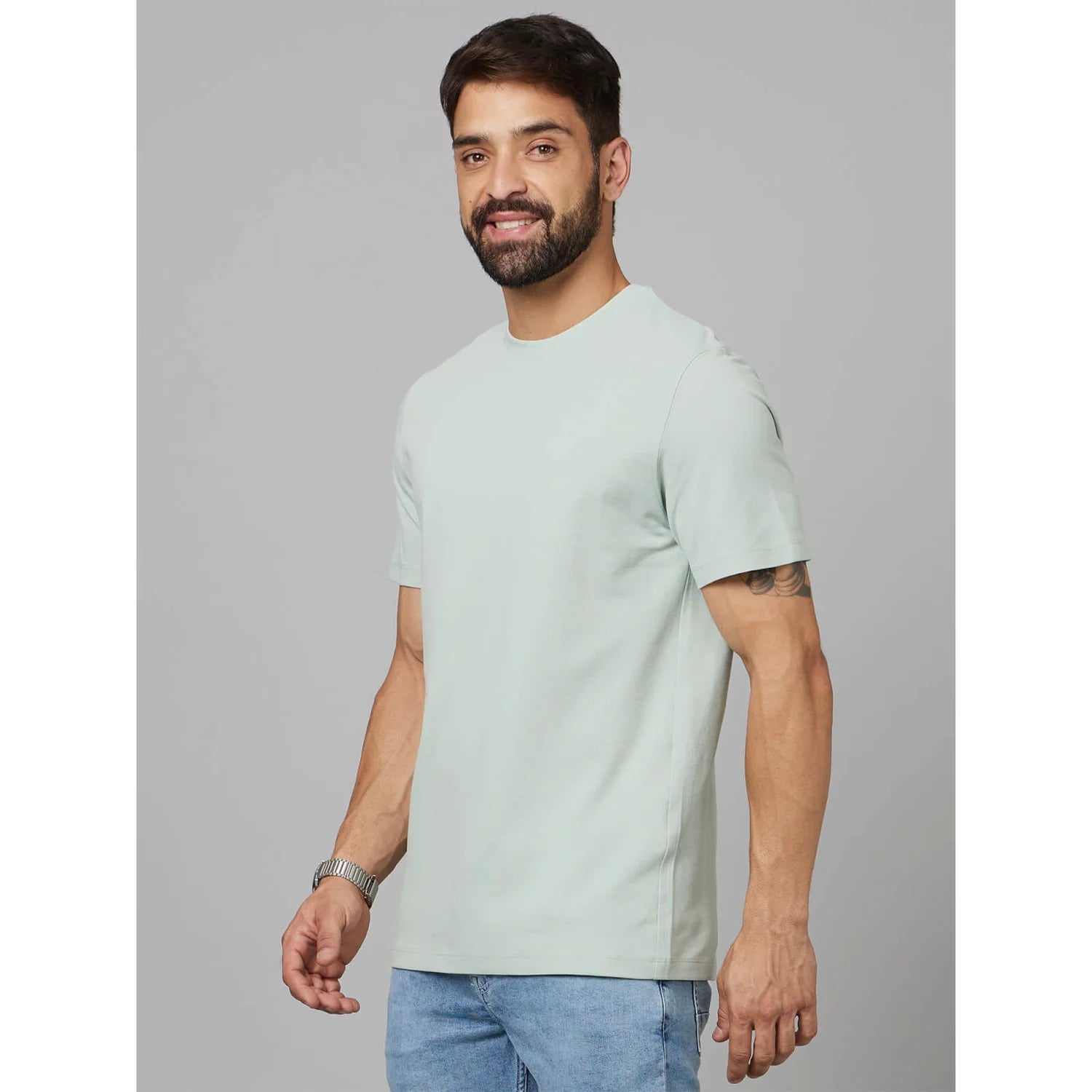 Celio* Solid Regular Fit Cotton Green T-Shirt