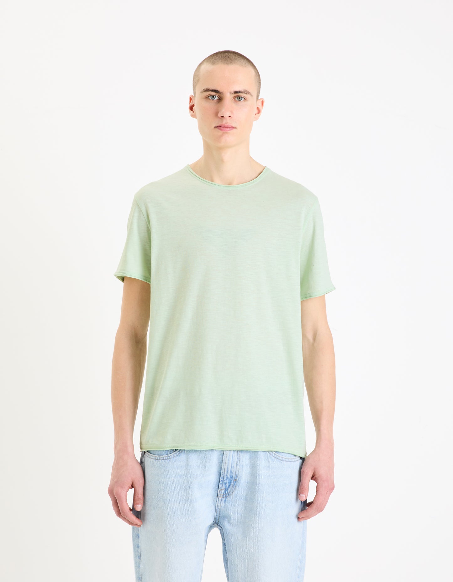 Celio* Solid Regular Fit Cotton Green T-Shirt