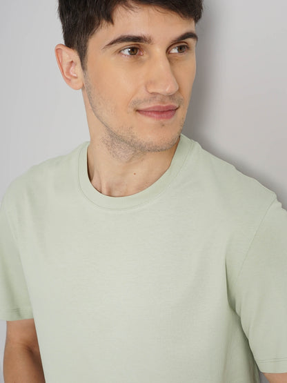 Celio* Solid Regular Fit Cotton Green T-Shirt