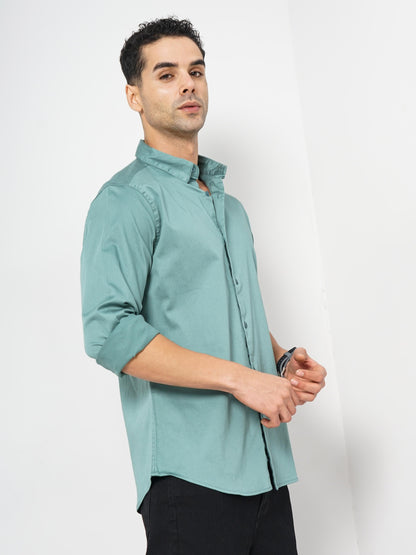 Celio* Solid Slim Fit Cotton Green Shirt