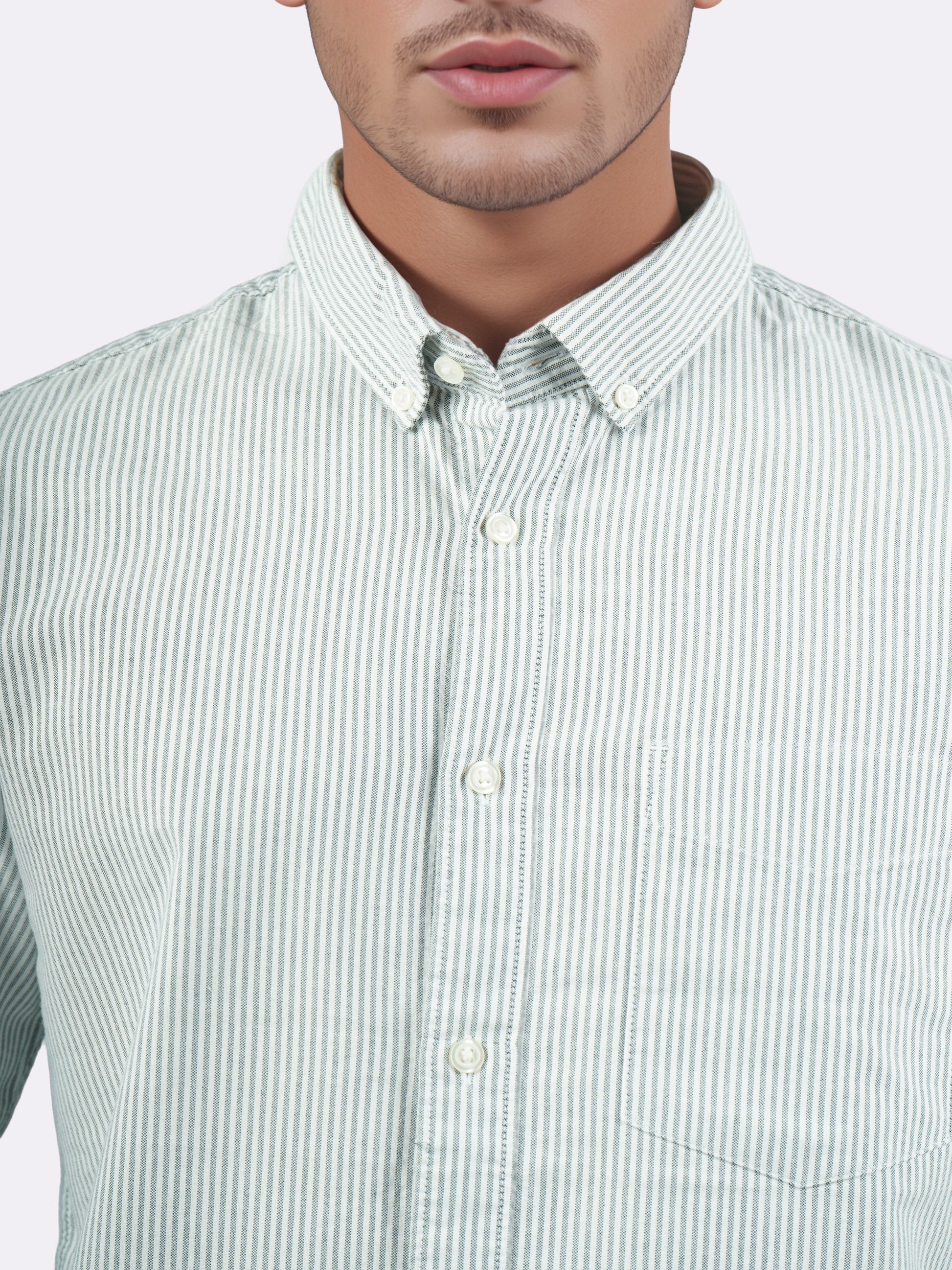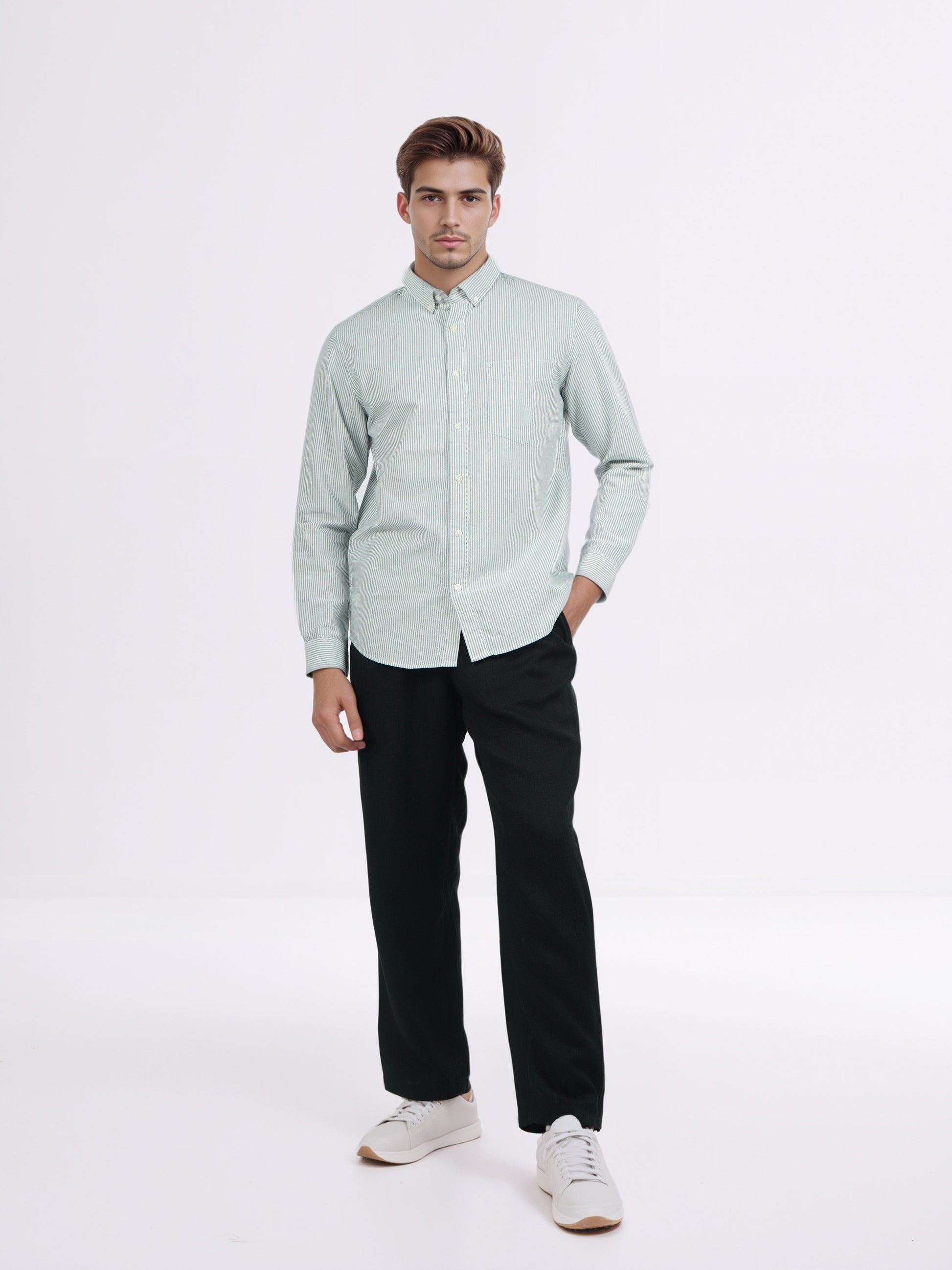 Discover style with the Celio Men Green Striped Casual Shirt. Made of soft cotton, it features a regular fit and long sleeves, perfect for everyday wear. Disclaimer: All other items in the image are only for display purposes and will not be a part of the delivery content. Product colour may slightly vary due to photographic lighting sources. Country of Origin - India.