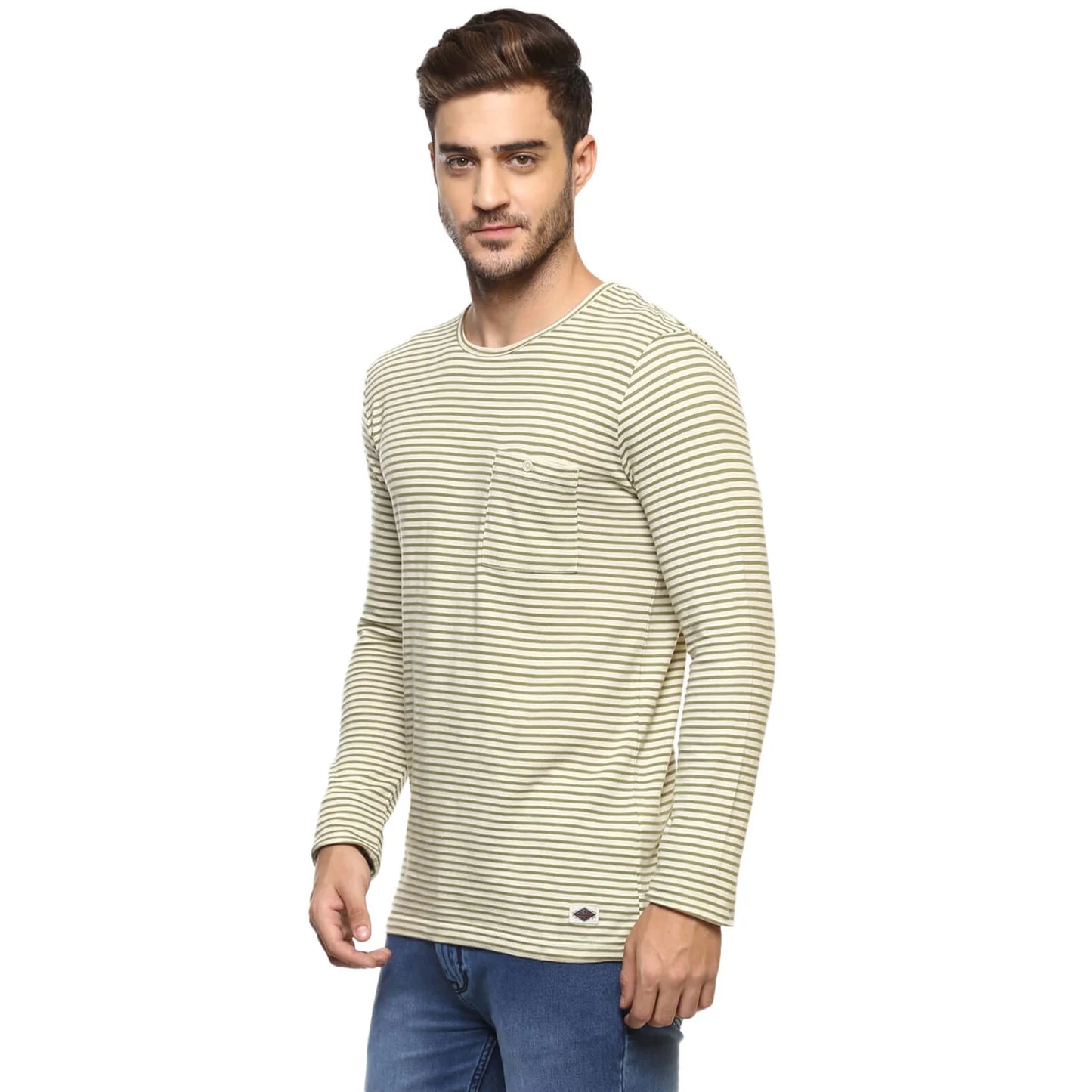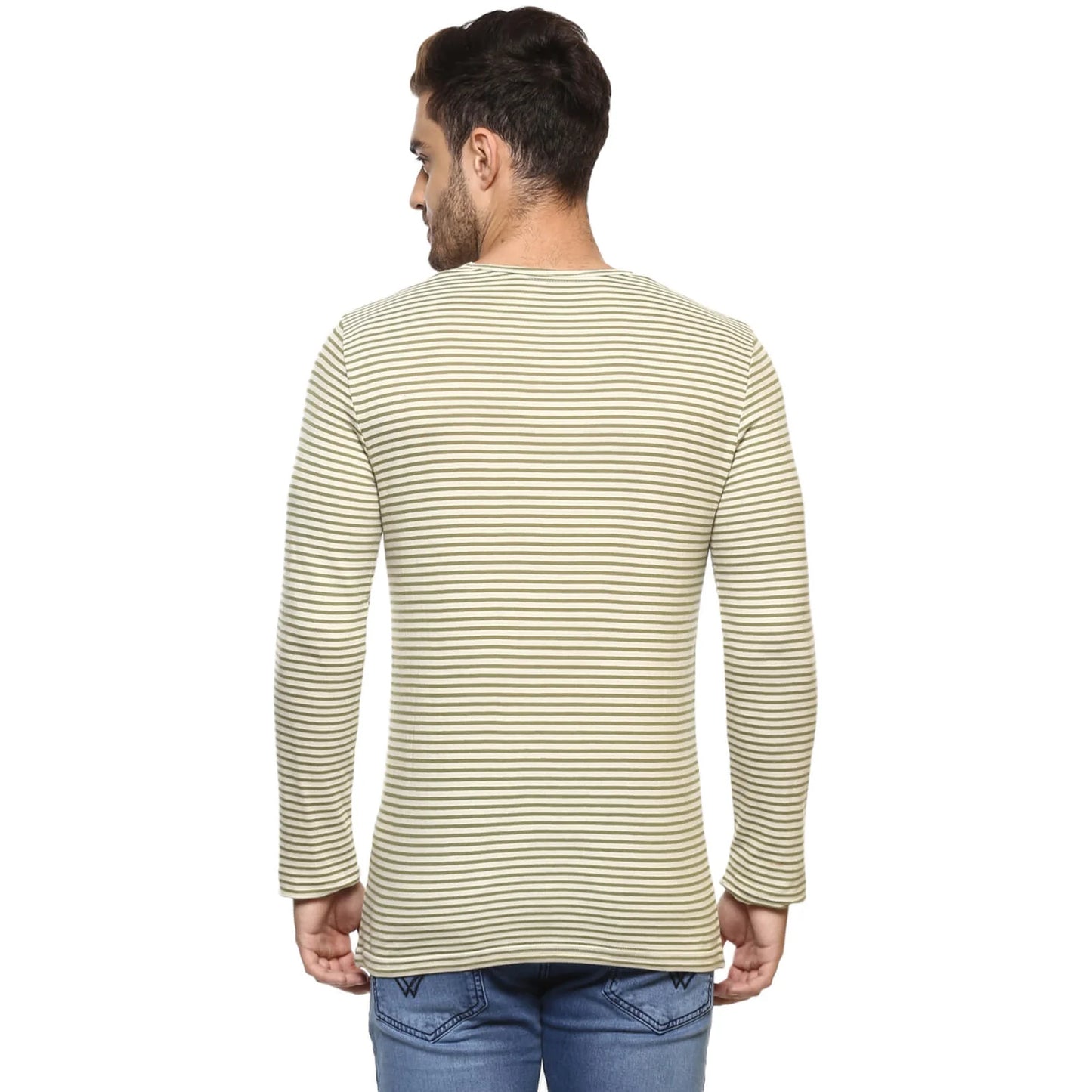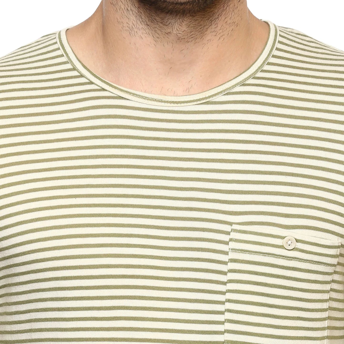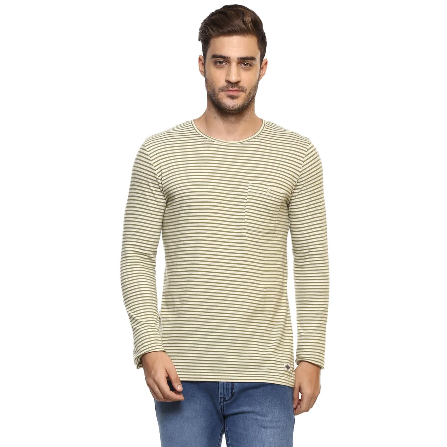 Shop the stylish Celio Men's Olive Striped T-Shirt in Menace Kaki. Made from comfortable cotton, this long-sleeve tee is perfect for casual occasions. Ideal for men. Disclaimer: All other items in the image are only for display purposes and will not be a part of the delivery content. Product colour may slightly vary due to photographic lighting sources. Country of Origin - India.