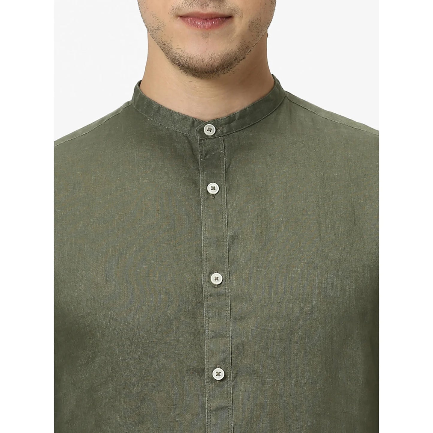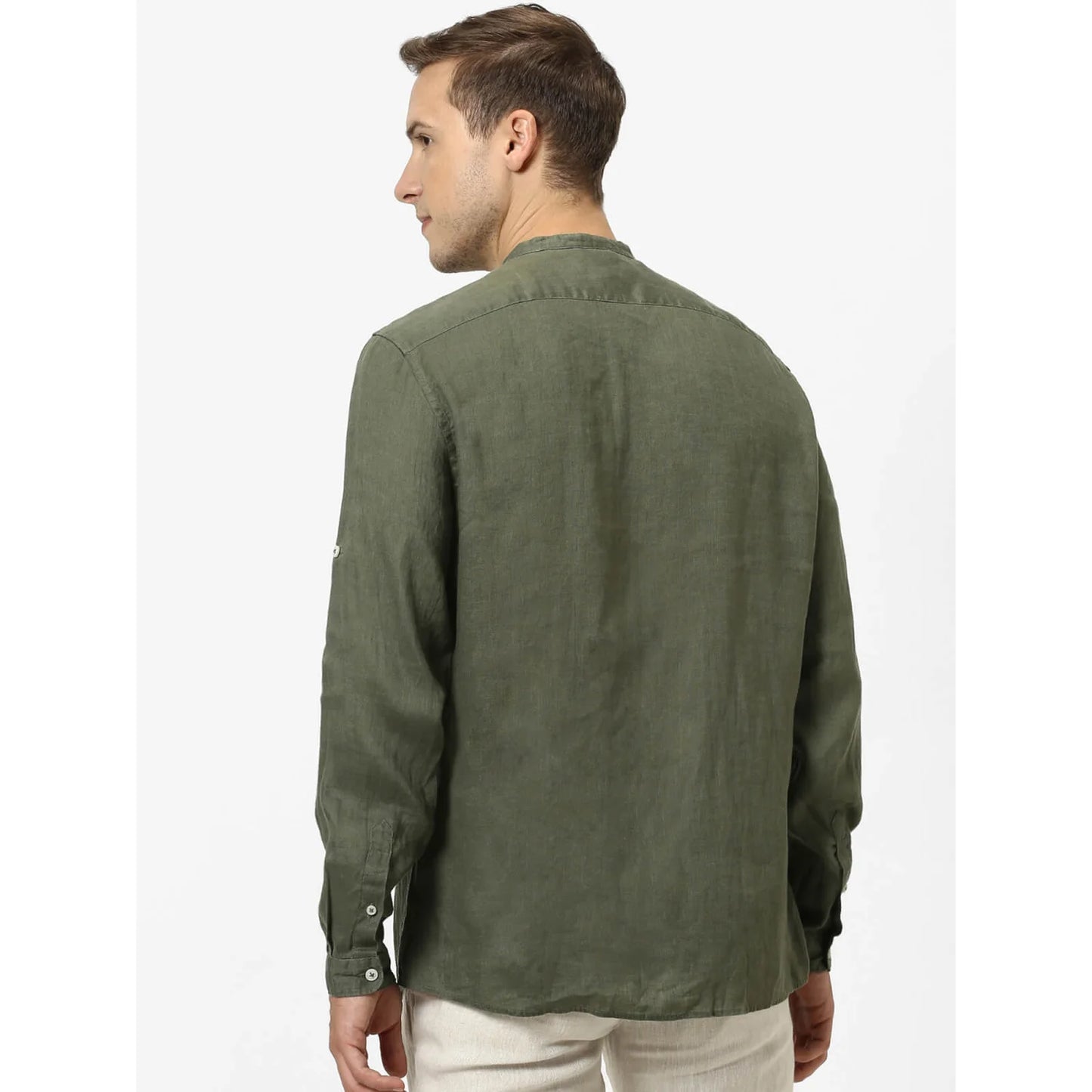 Elevate your casual wardrobe with the Celio Men's Olive Solid Casual Shirt. Made from breathable linen, this long-sleeve shirt is perfect for a relaxed yet stylish look. Disclaimer: All other items in the image are only for display purposes and will not be a part of the delivery content. Product colour may slightly vary due to photographic lighting sources. Country of Origin - India.