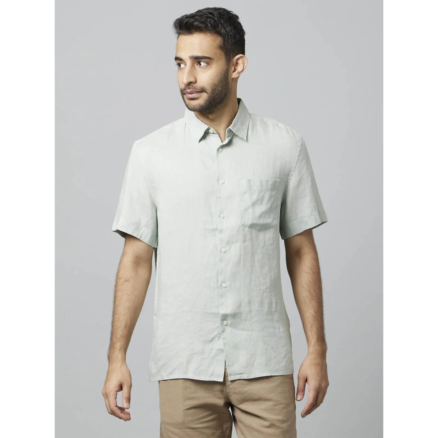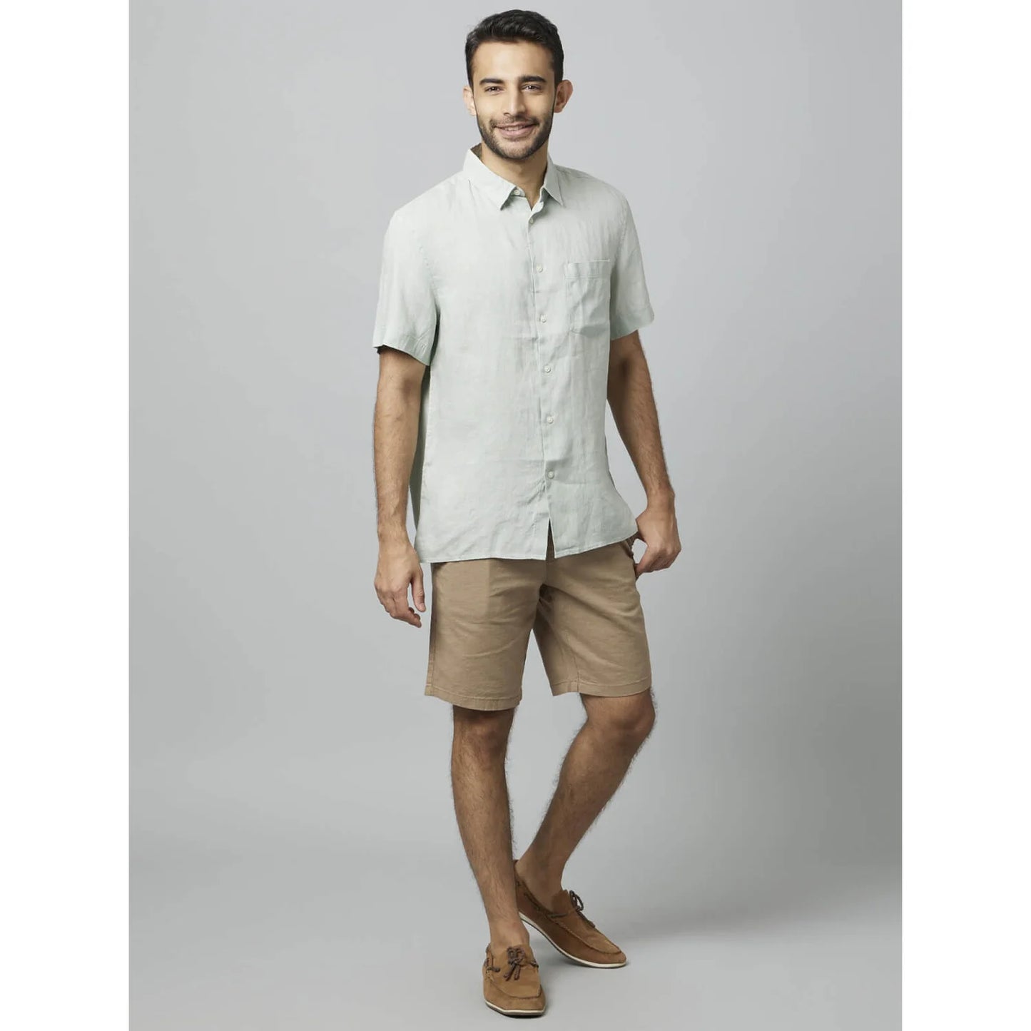 Elevate your casual wardrobe with the Celio Linen Solid Green Short Sleeves Shirt. Made from breathable linen, this stylish shirt is perfect for men looking for comfort and trend. Disclaimer: All other items in the image are only for display purposes and will not be a part of the delivery content. Product colour may slightly vary due to photographic lighting sources. Country of Origin - India.