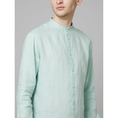 Celio Men's Mint Linen Shirt in mint green is perfect for casual occasions. Made from breathable linen, it features long sleeves for a comfortable fit. Disclaimer: All other items in the image are only for display purposes and will not be a part of the delivery content. Product colour may slightly vary due to photographic lighting sources. Country of Origin - India.